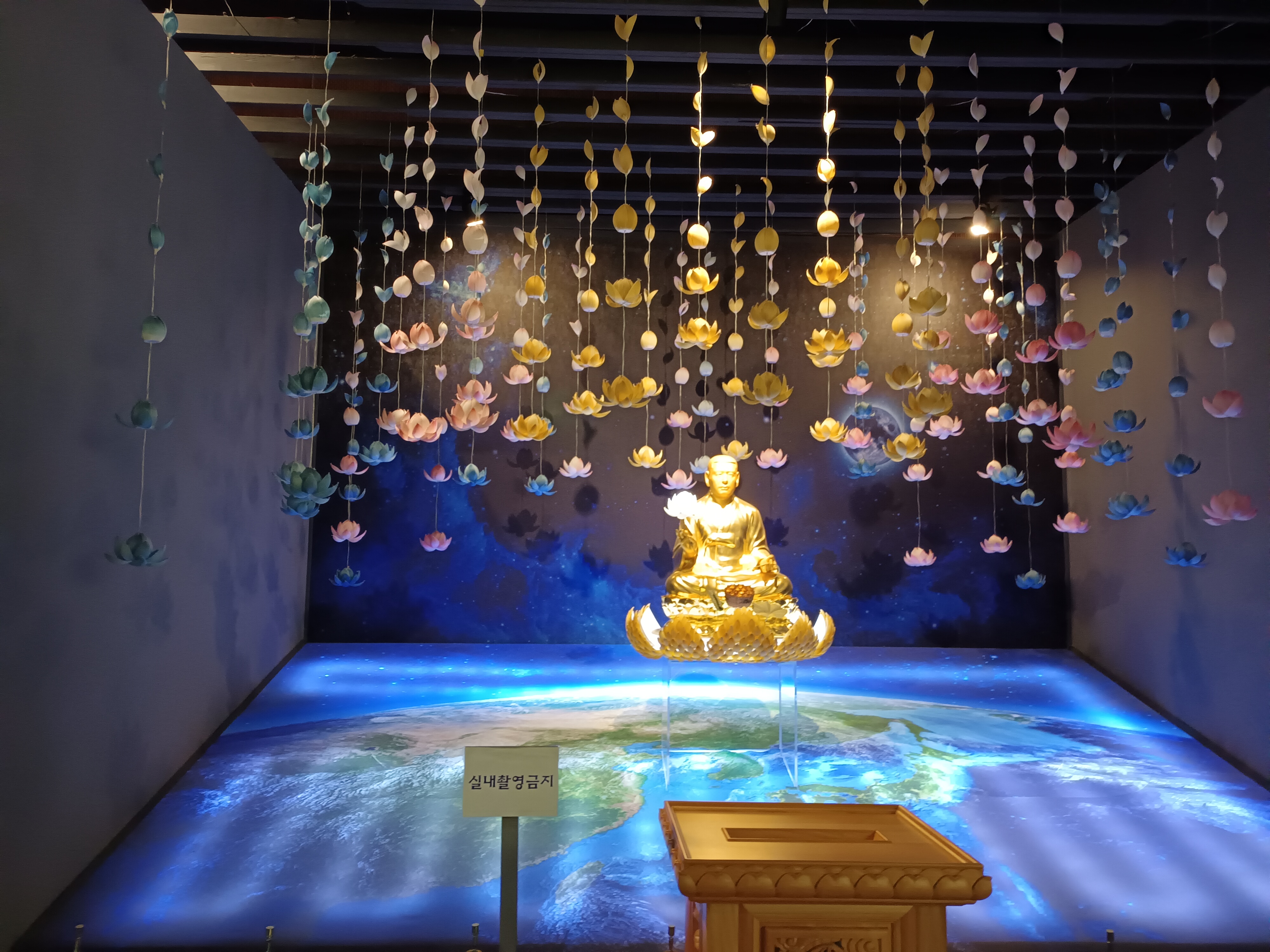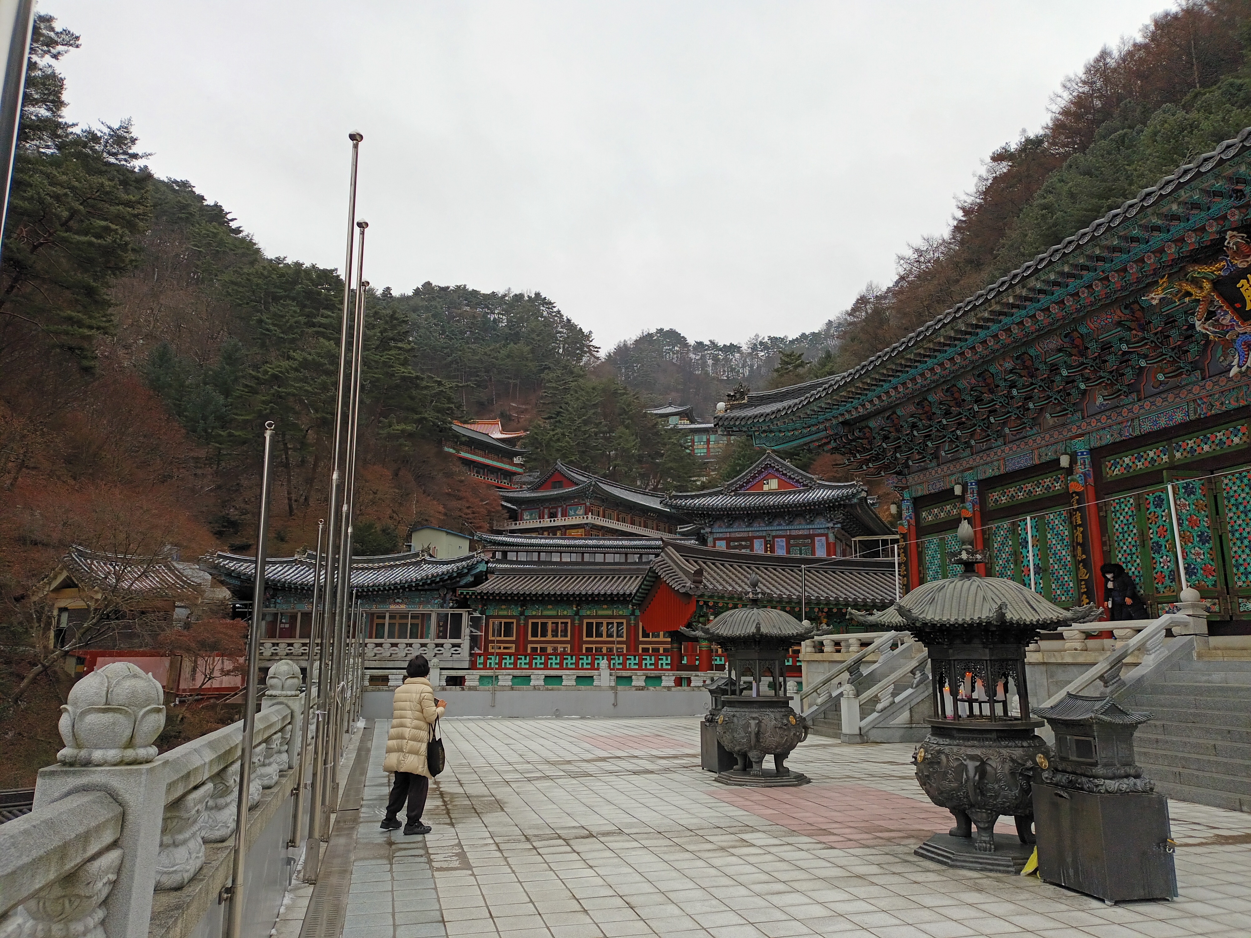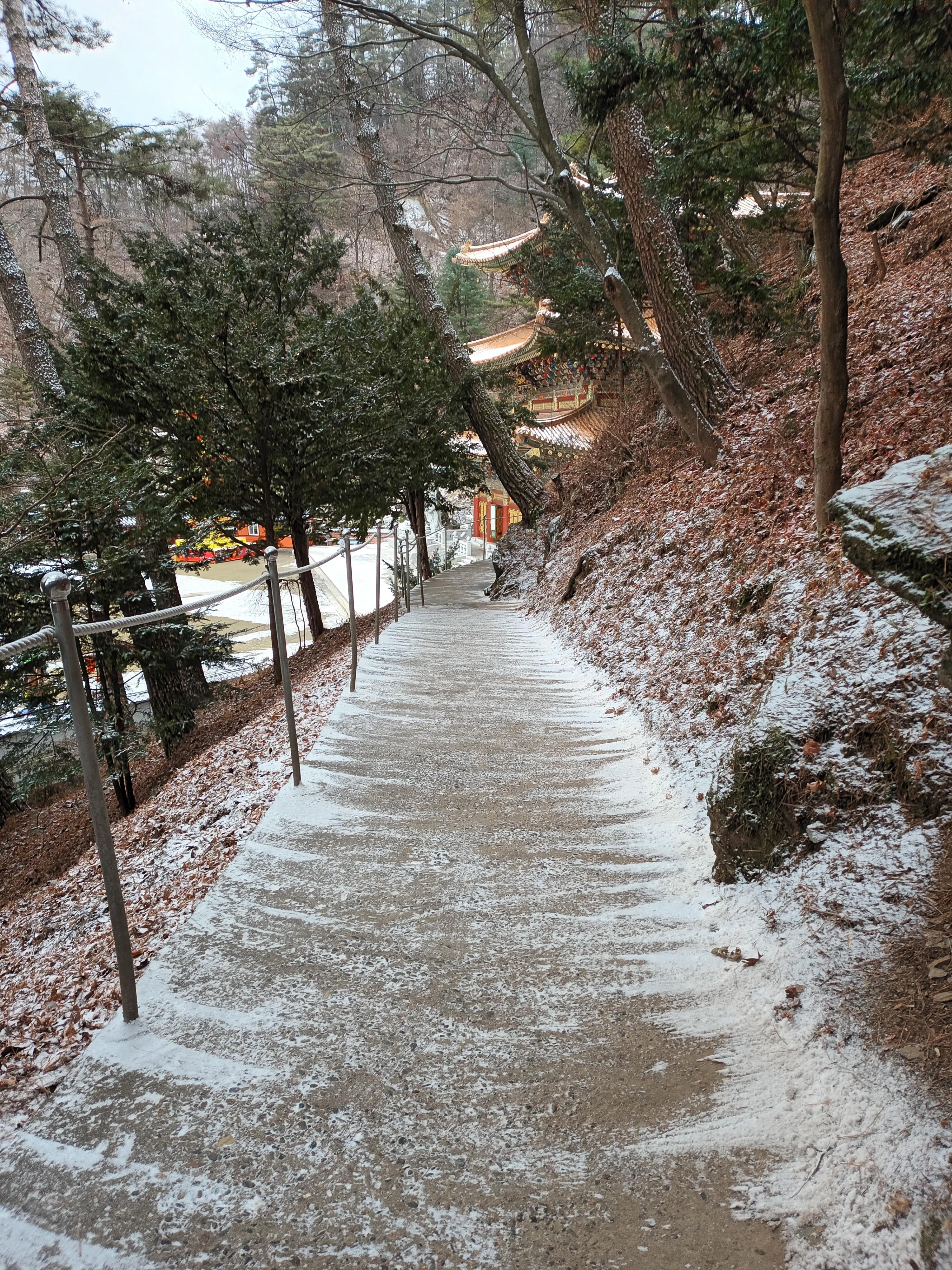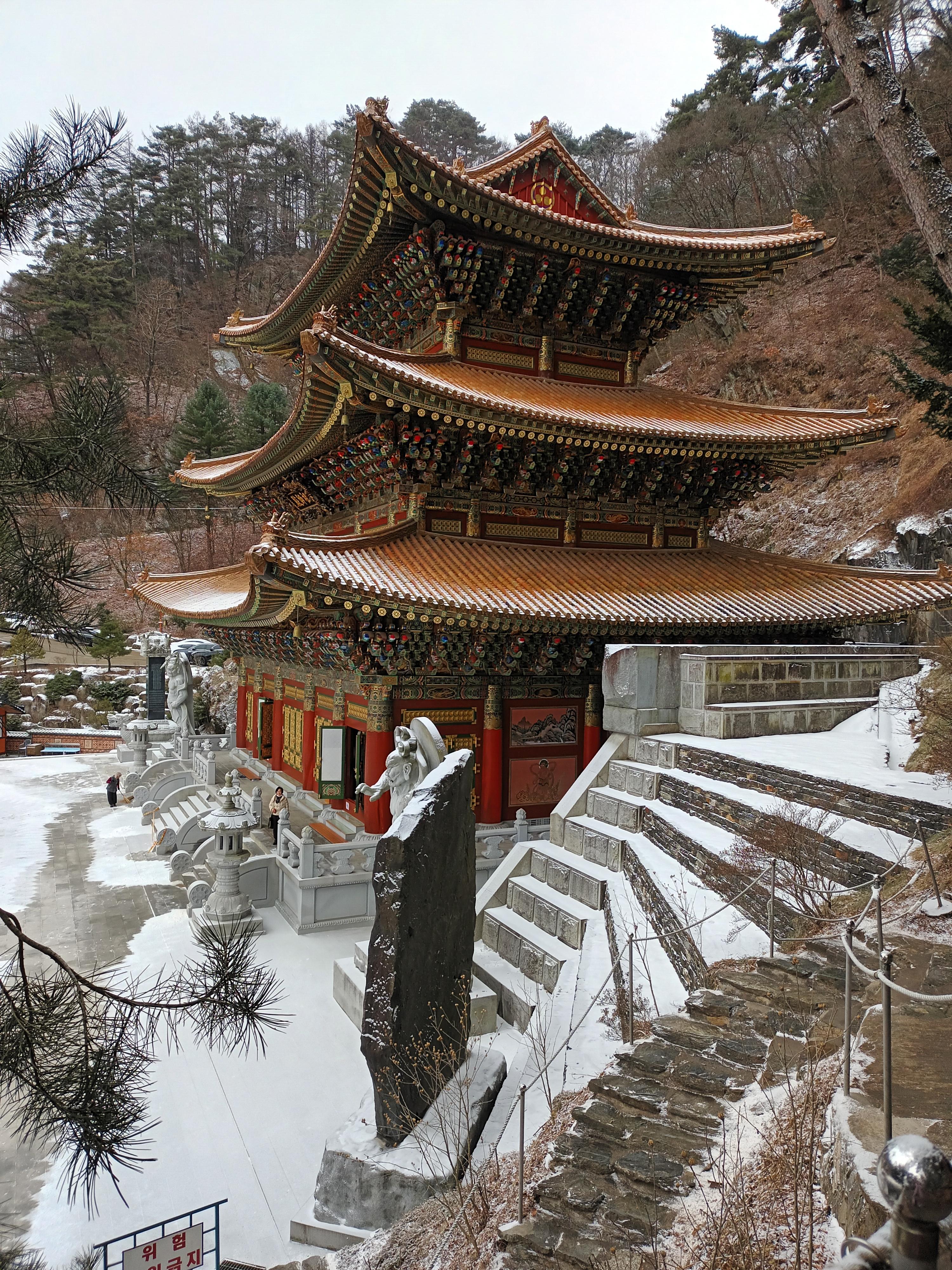 신도들이 각각 전각들을 청소하는 것은 봤다. 각 전각들 아래에는 시도들이 기도할 수 있는 방들이