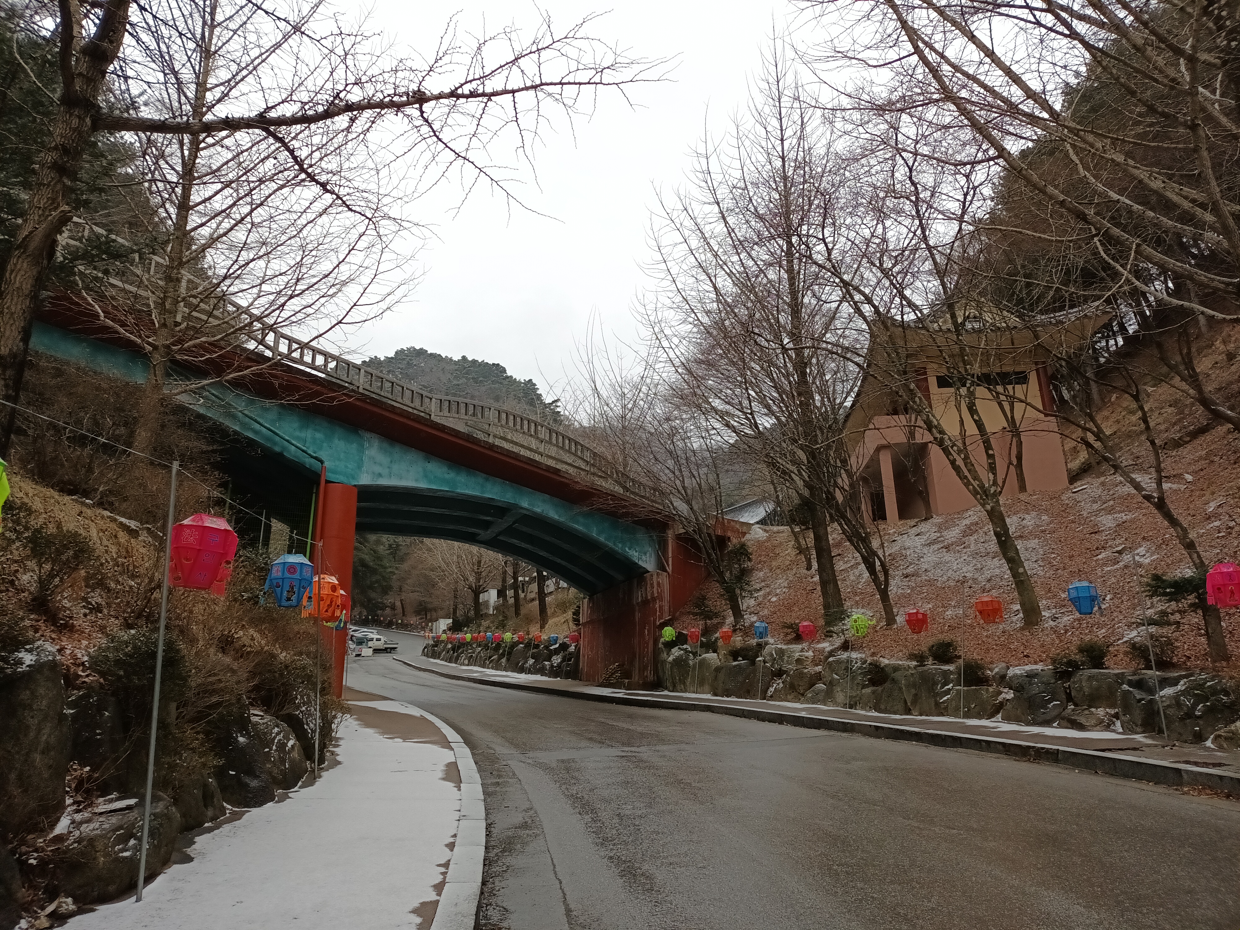 여기서부터 박물관을 관람하고 구인사 안내소를 지나 얀쪽으로 등이 달린 아스팔트 도로를
