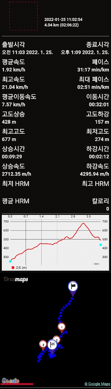 거 리 : 4.04㎞ 2시간 06분 (구인사 박물곤앞 주차장에서 부터 거리 측정한 것임)