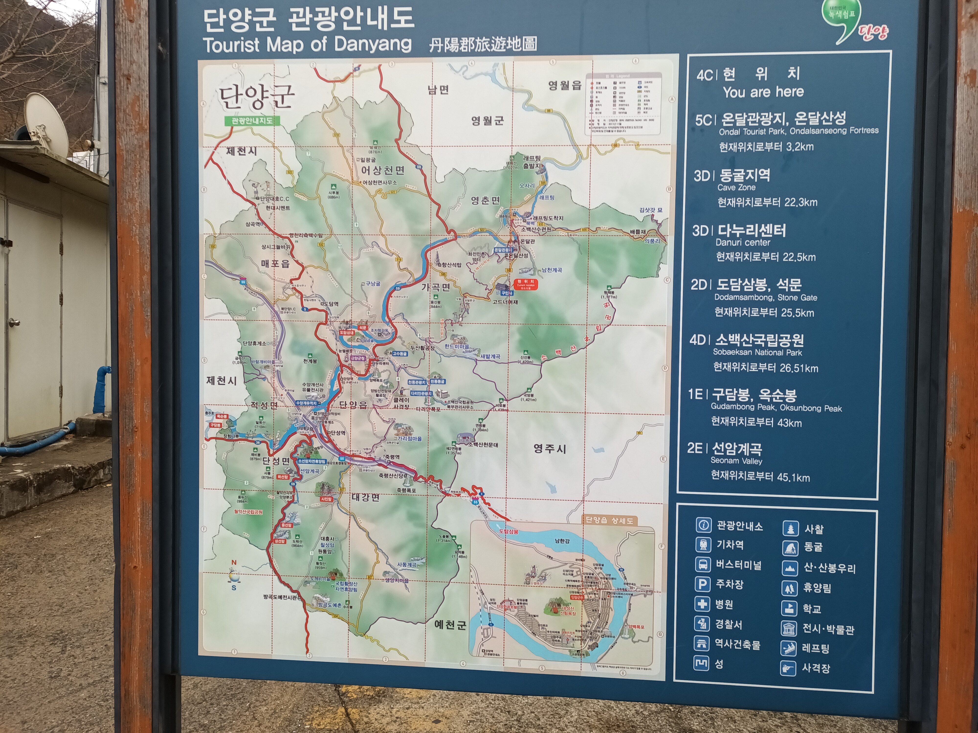 따라 가다 보면 천태종 구인사 이정표 우측을 따라 가다 보면 구인사 시외버스 주차장이