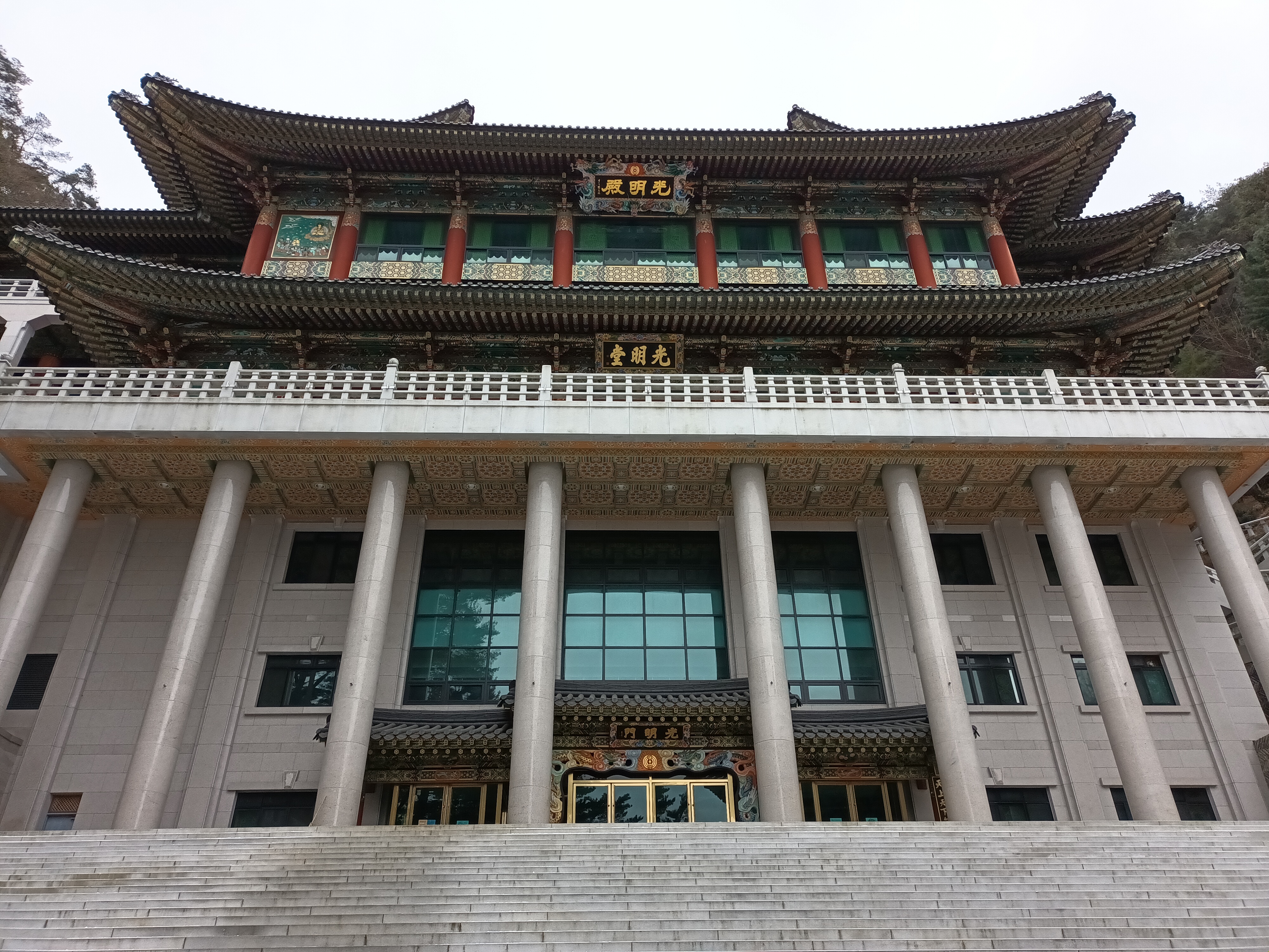 건물있고 광명당 옥상위에 조사전이 겉은 3층 이고 안은 원통인데 상월중창조 조사당이다.