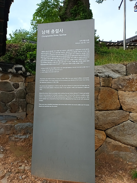 ※노량해전 당시 이순신 장군의 유해가 최초로 육지에 오른 관음포 이 충무공전몰유허(이력사)와 남해충렬사