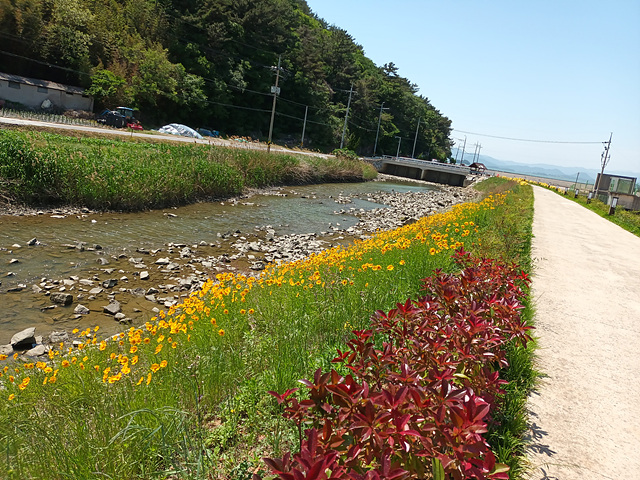 교각 지나 우측 뚝방길로 진행