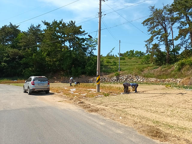 마늘을 봅으면서 이야기를 하시는 농부