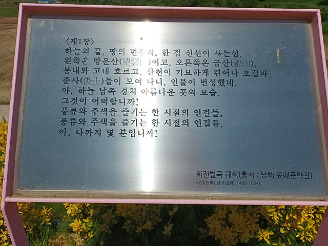 첨앙대 안족에 걸린 액자 글