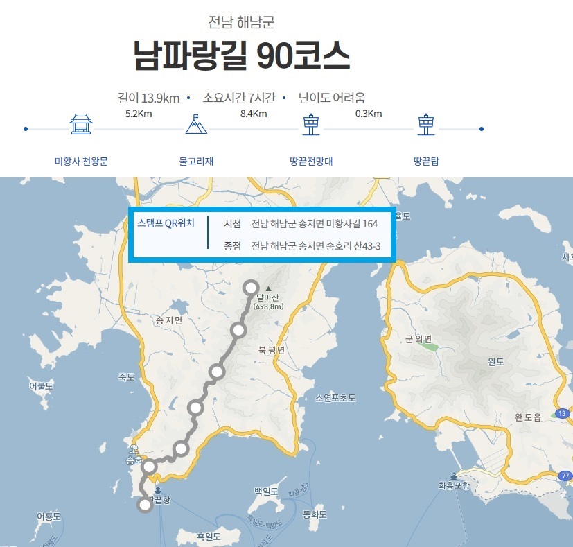 90코스 종점 : 전남 해남군 송지면 송호리 산 43 - 3