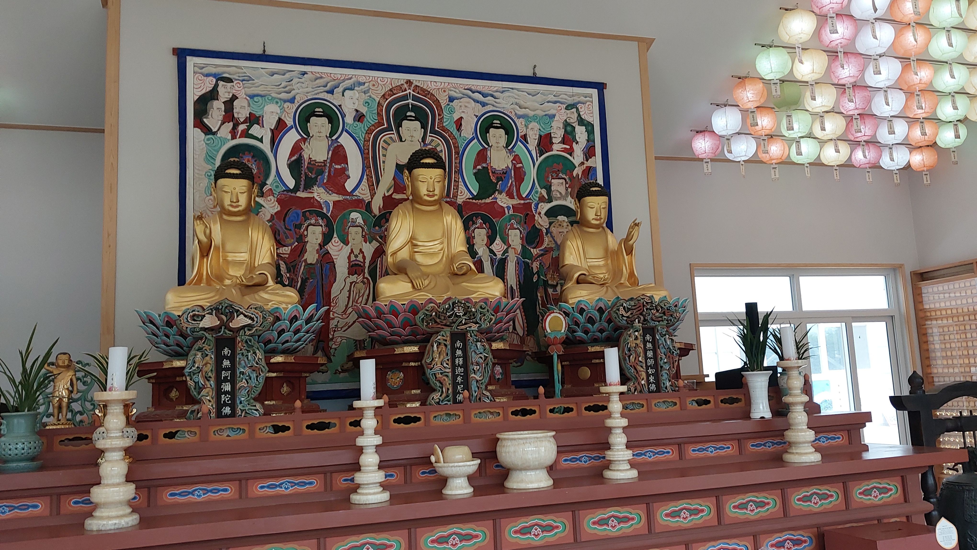 대웅전 부처님(가운데 석가모니불, 우보처 아미타불, 좌보처 약사부처님)