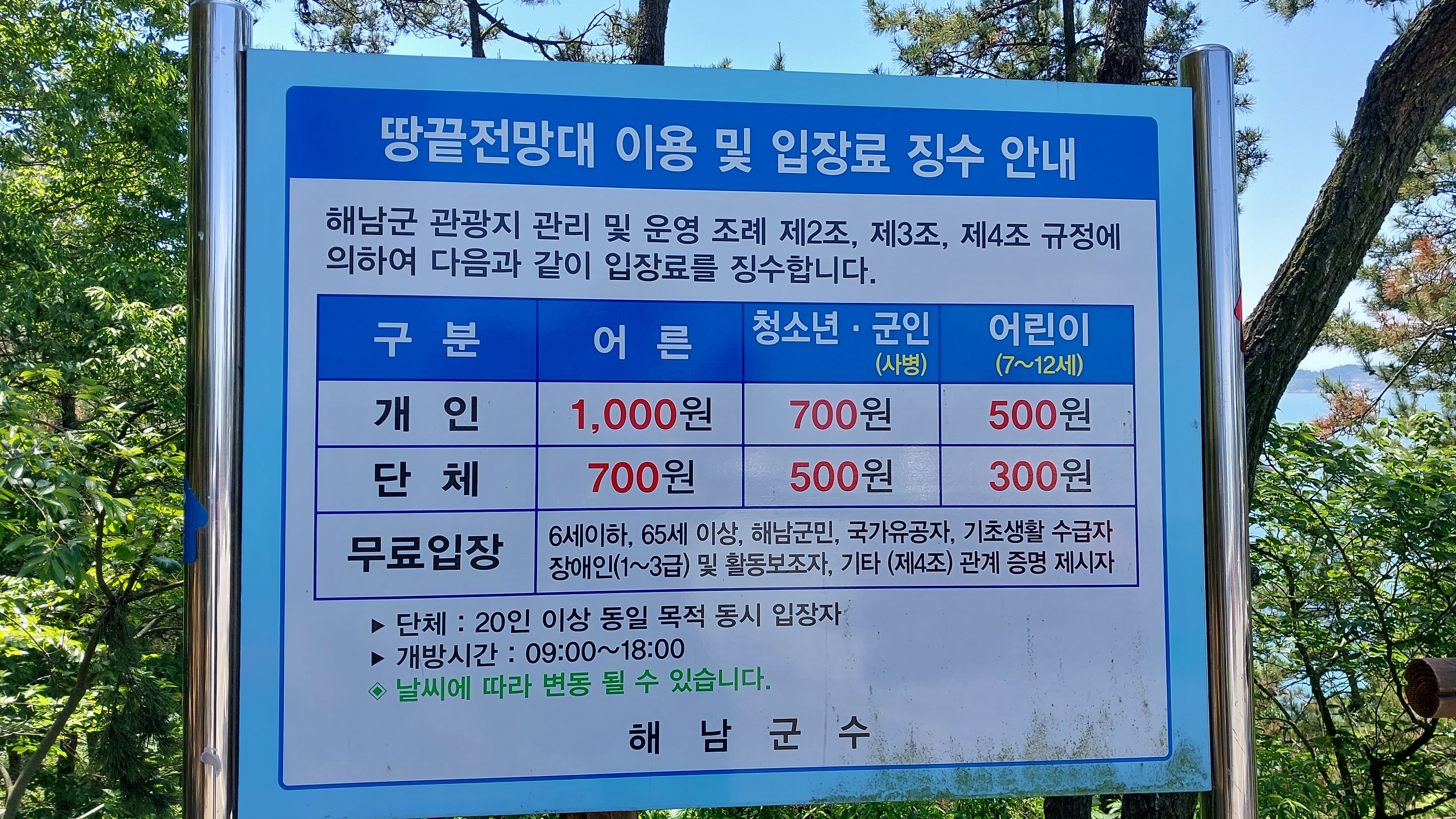 땅끝 전망대 가는길 공사중이다.