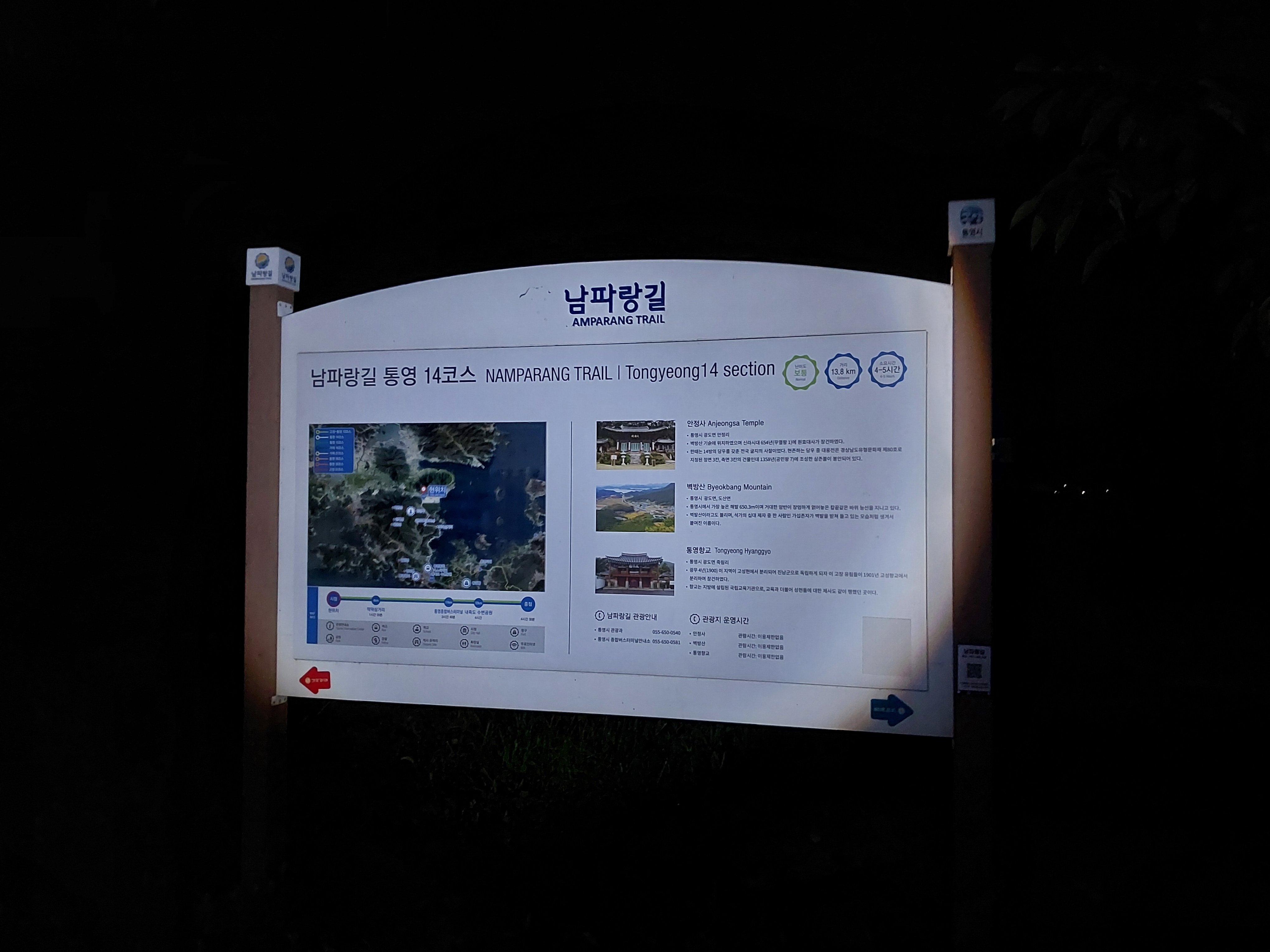 코 스 : (역방향)통영광도면 황리사거리 - 화당마을 - 거류초등학교 - 마동호 - 배둔시외버스터미널