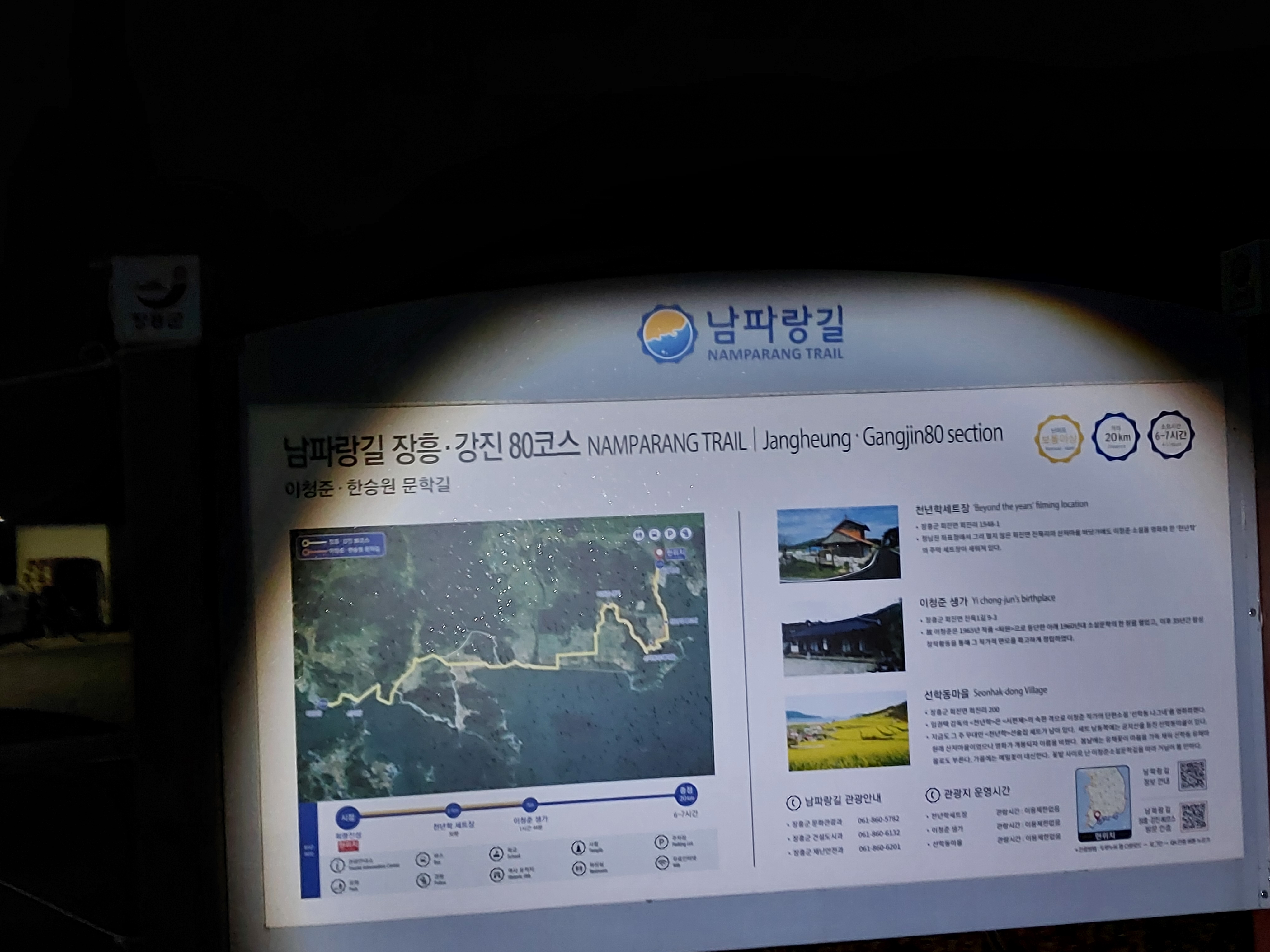 코 스 : 회진시외버스터미널 - 정남진해안도로 - 덕산마을 - 한재고개 - 신상마을회관 - 정남진 방조제 -