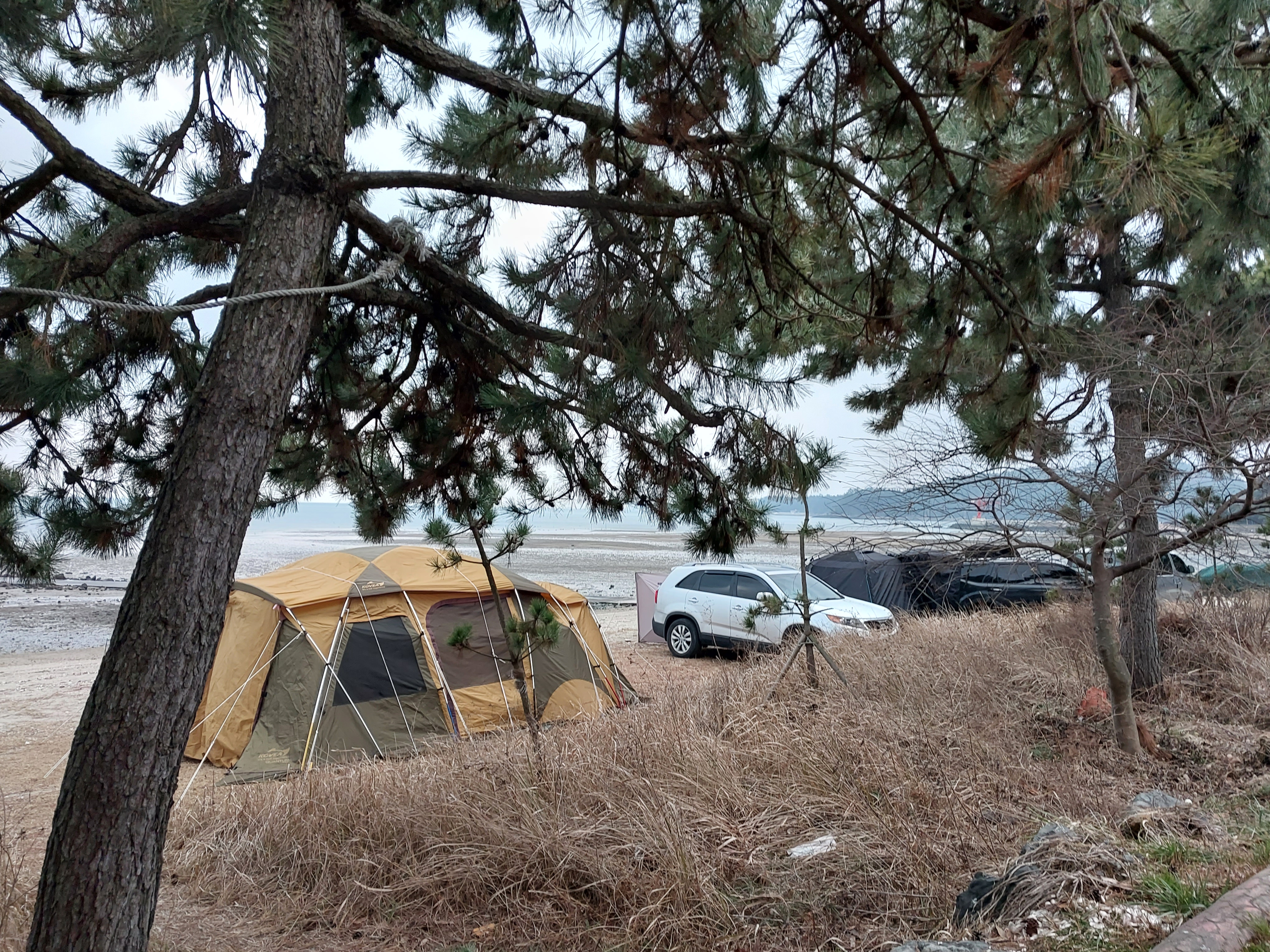 멀리 보이는 많은 차들이 키조개 구이 먹으러 온 차