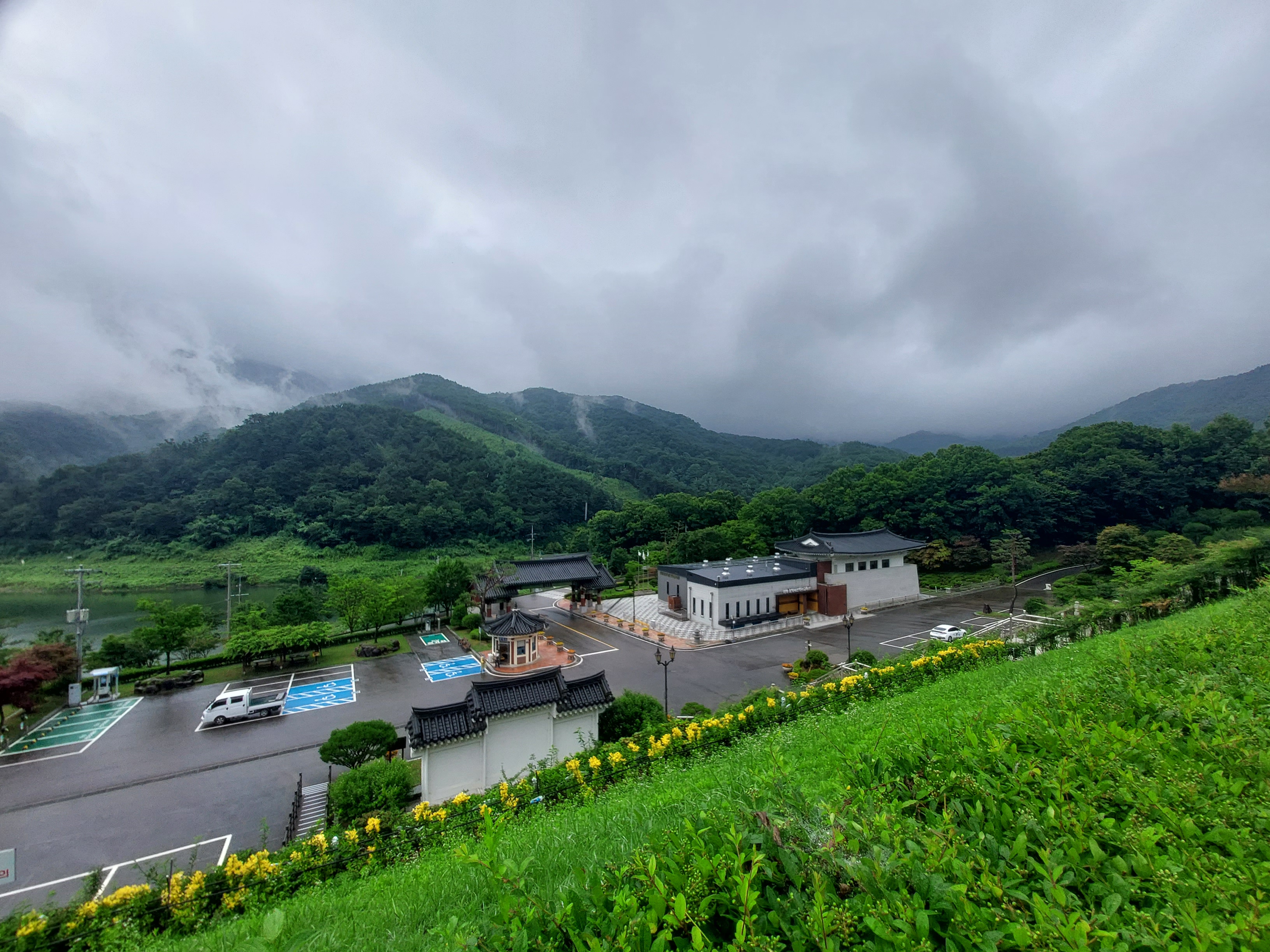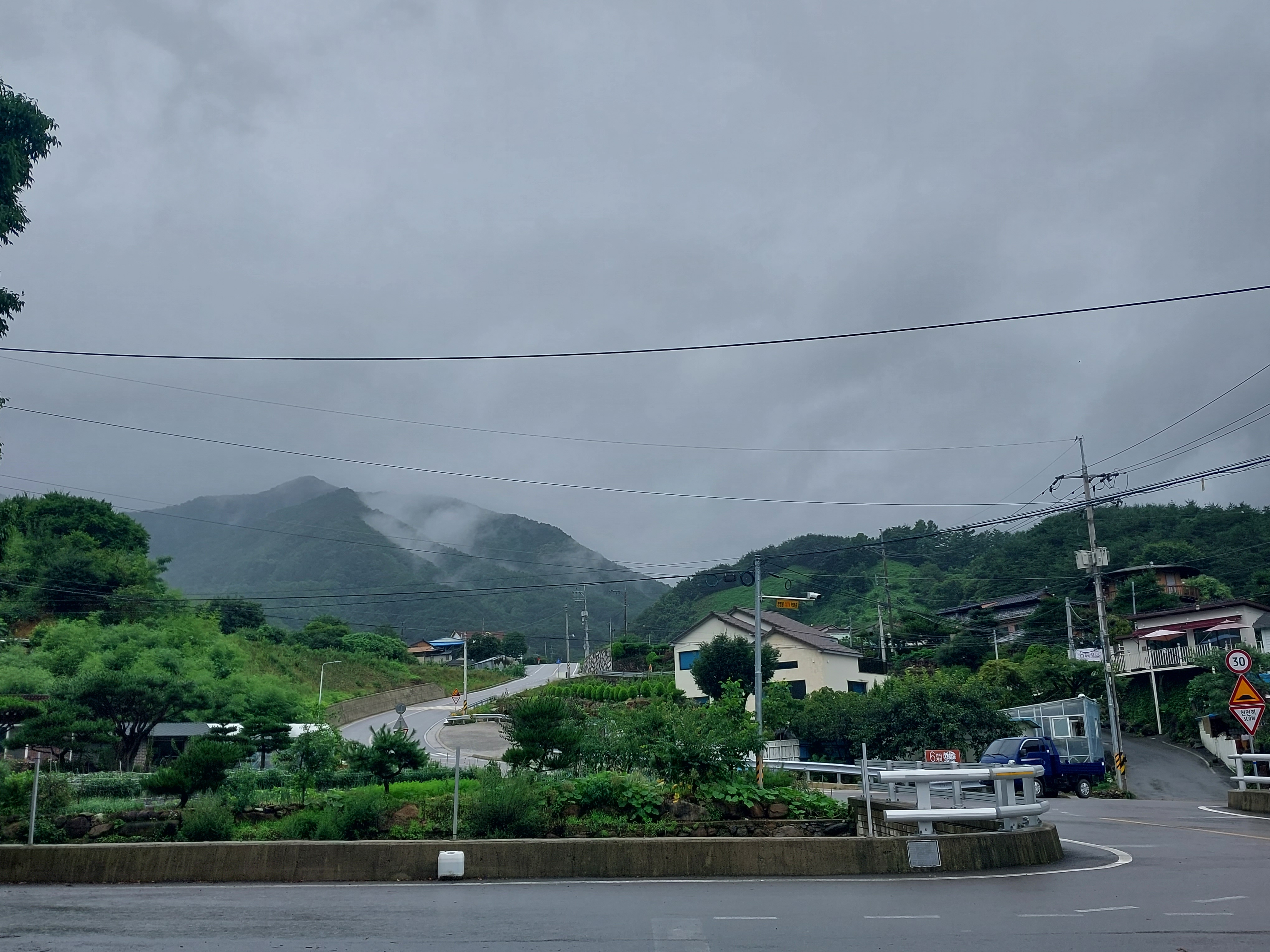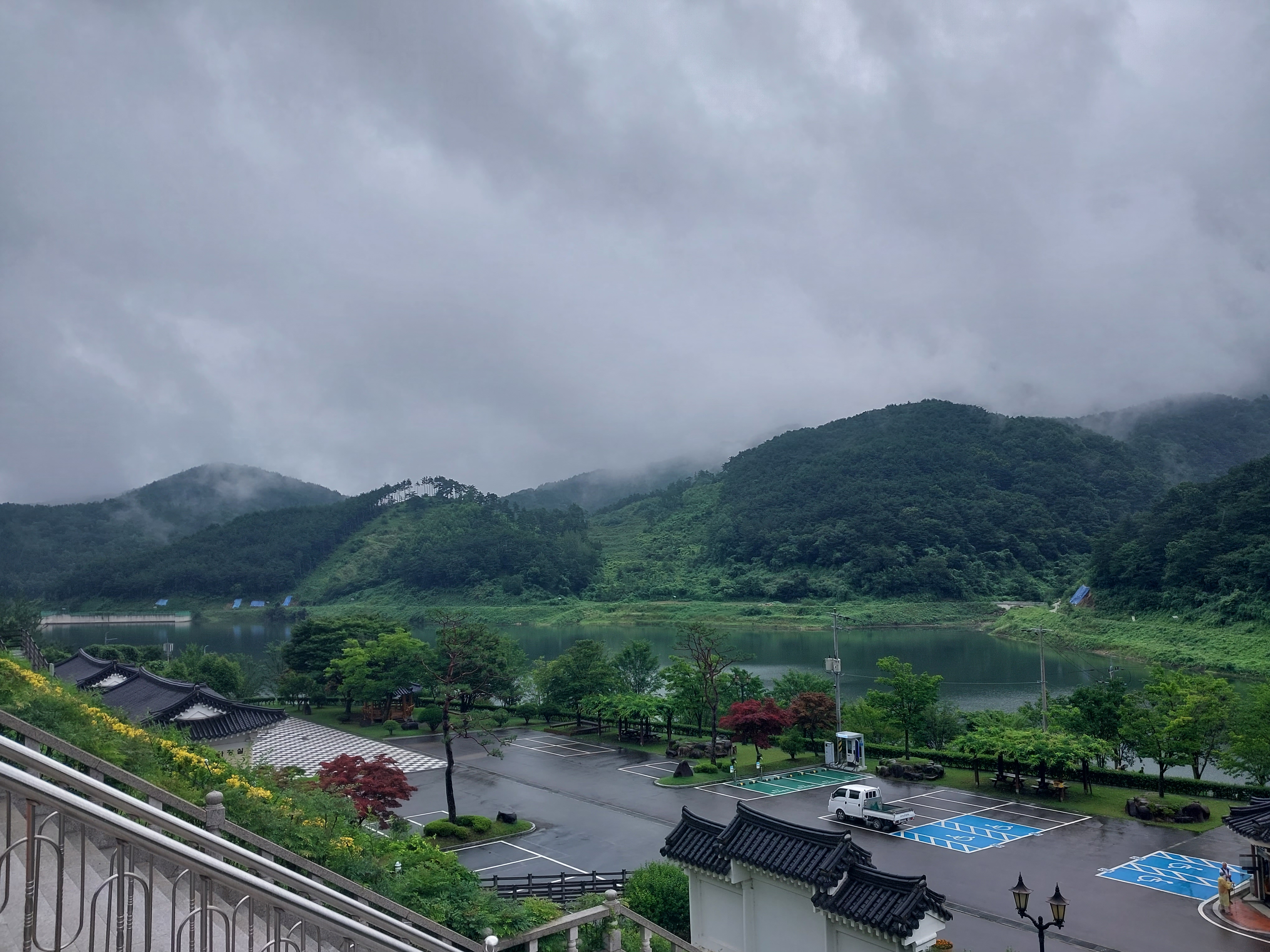 언 제 : 2024년 7월 14일 일요일 우산을 쓸정도의 비와 안개