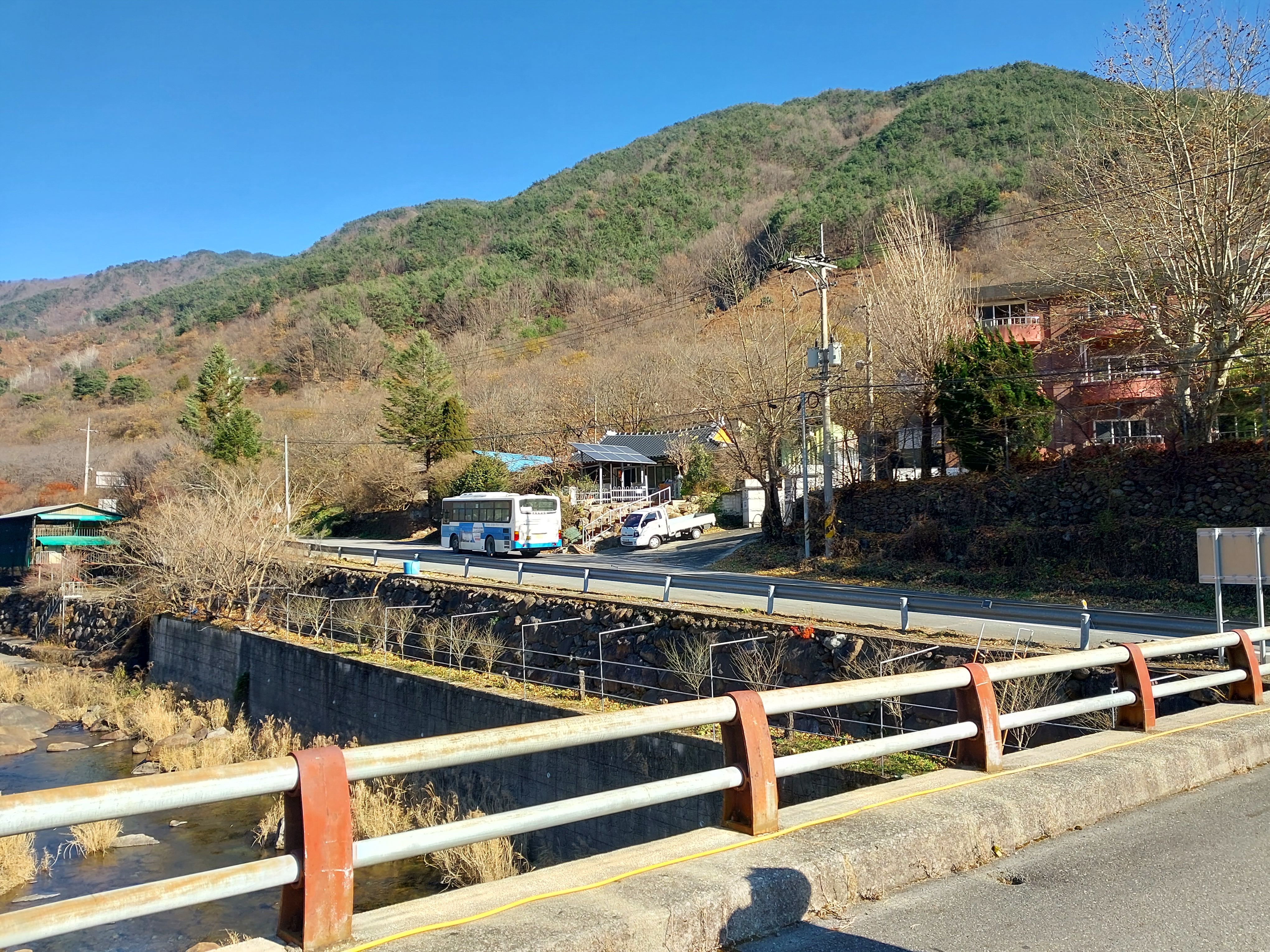인사를 건넨다. 제법 경사가 있는 길이지만 숲과 강이 있어 상쾌하다. 깊은 산골이지만 걷다가 자주 묵답을