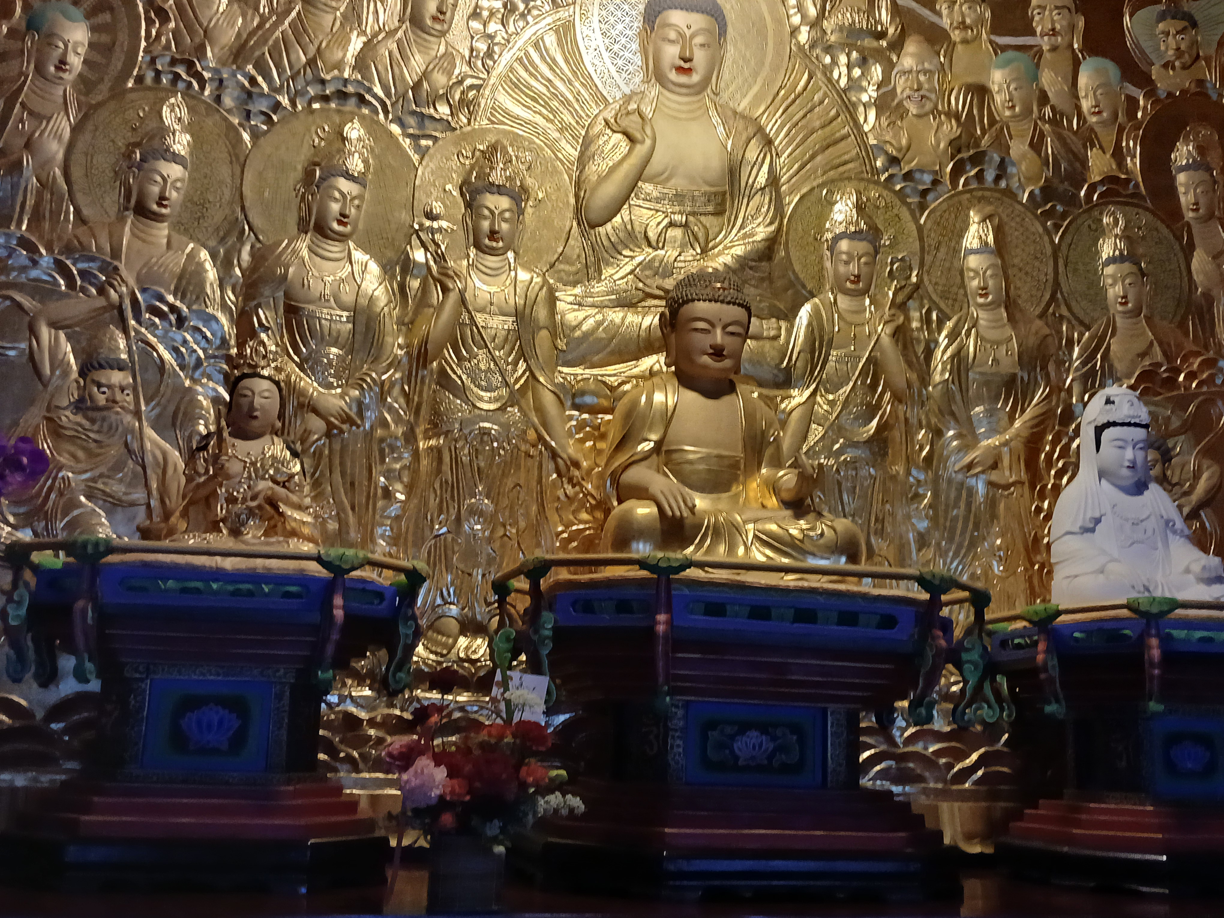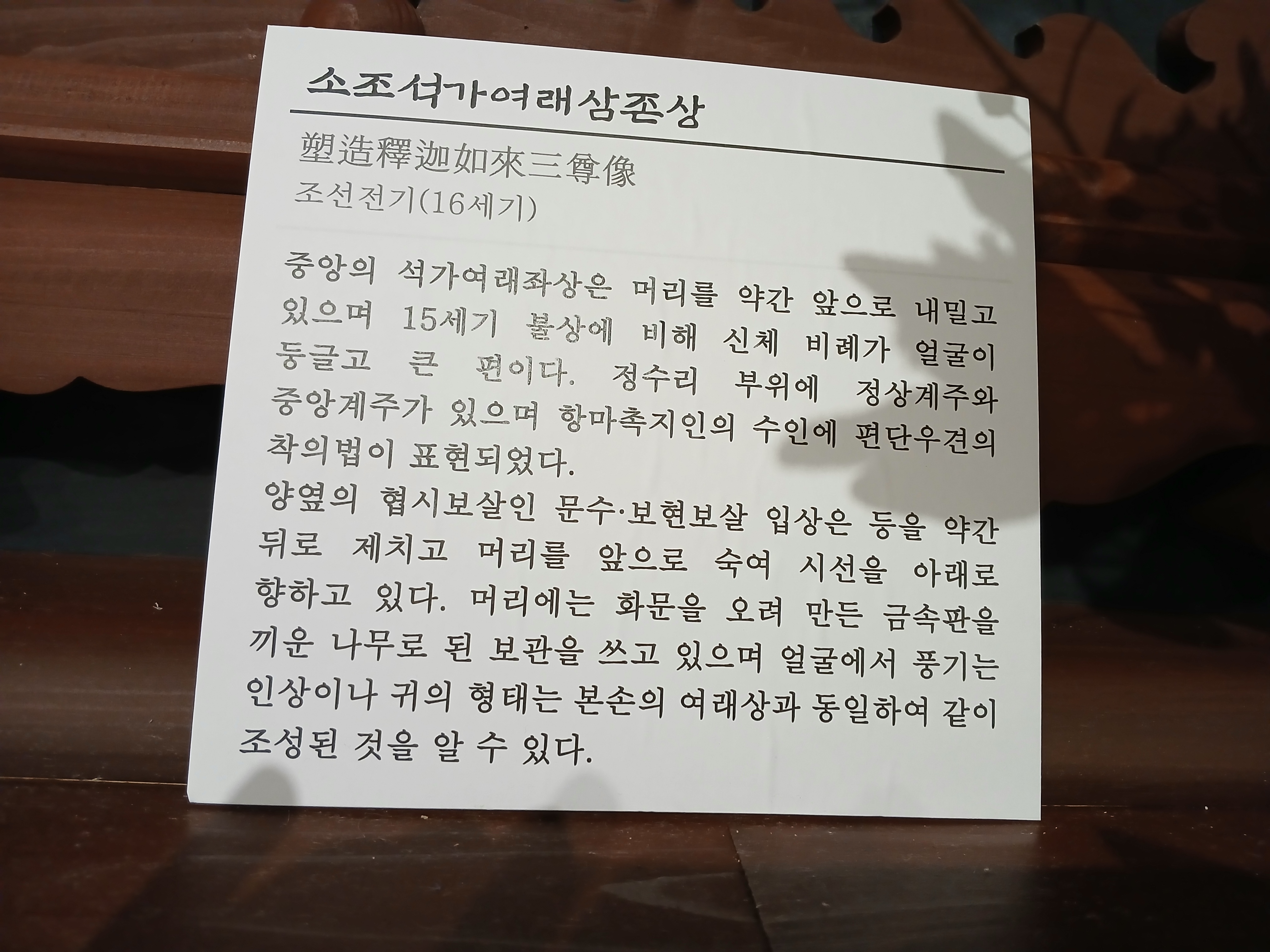 가운데 석가모니불 조,우보처를 관세음보살을모셨다(백의관음, 또 한분관음보살이 눈에 띄여 스님께 설명을 부탁했는데