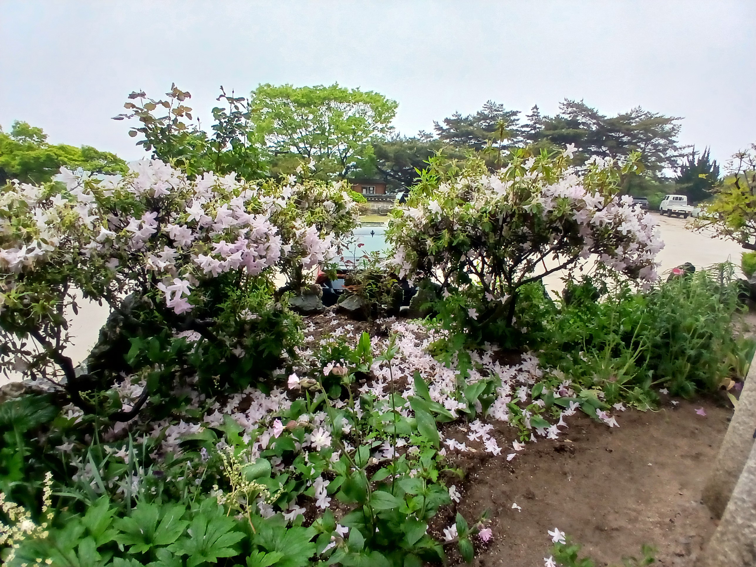 비가 ㅗ니 꽃잎들이 눈처럼 보이기도 한다.