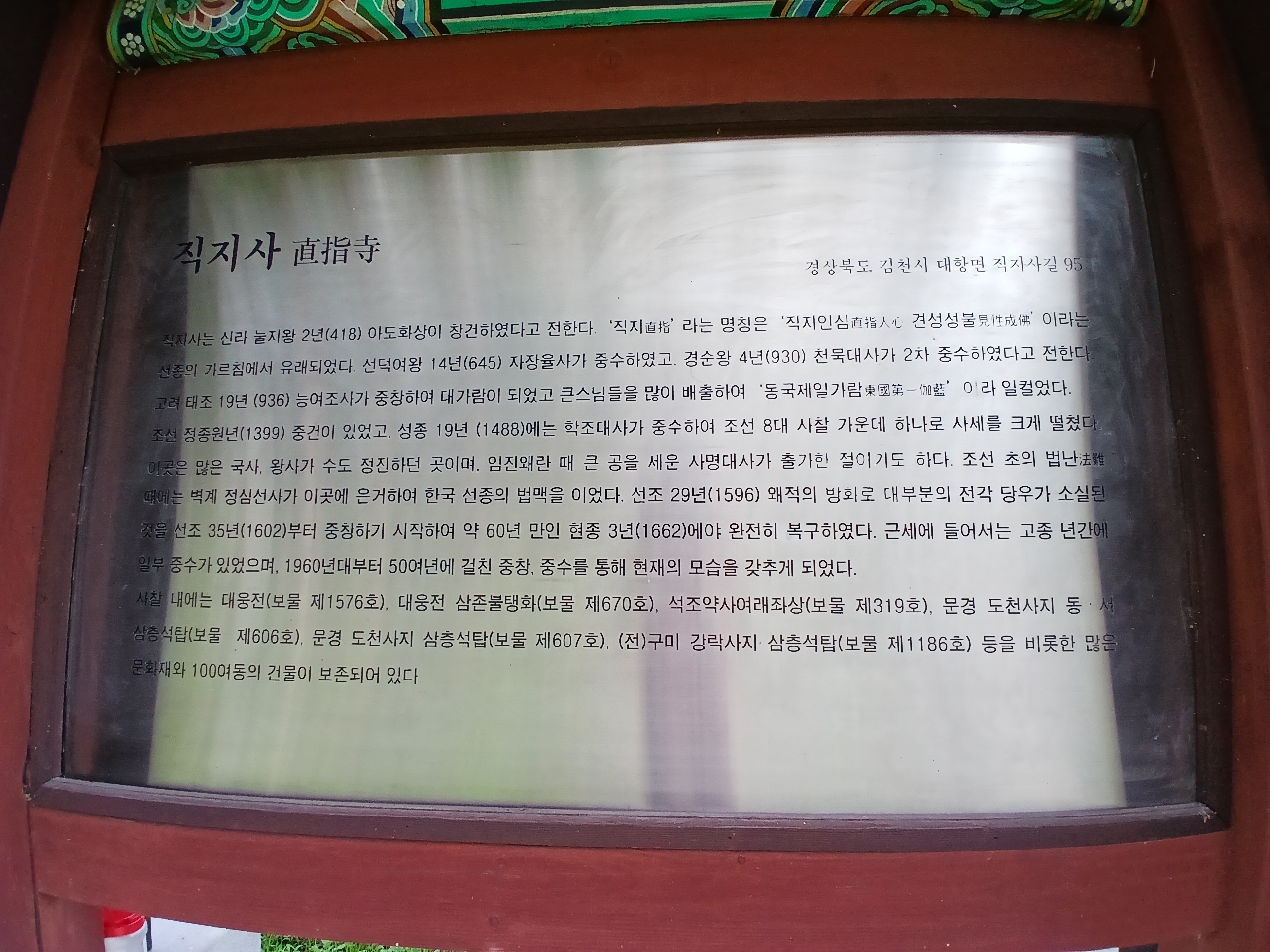강조하는 "직지인심 견성성불" 의 깊은 뜻을 간직한 직지사. 그런 의미에서 직지사는 우리의 본래 마음자리를