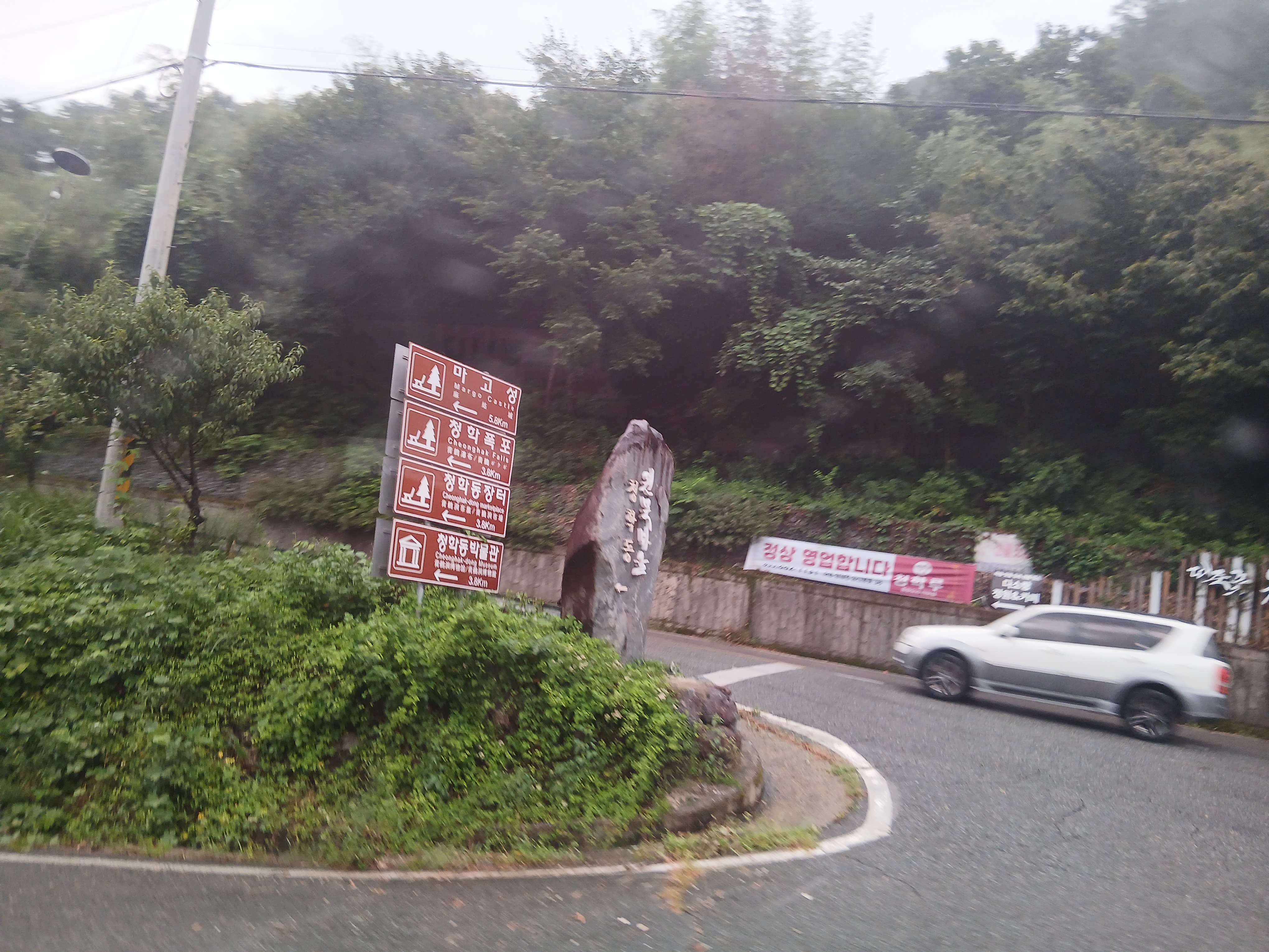 산행 입구 청학동 입구에 내릴때 장대비