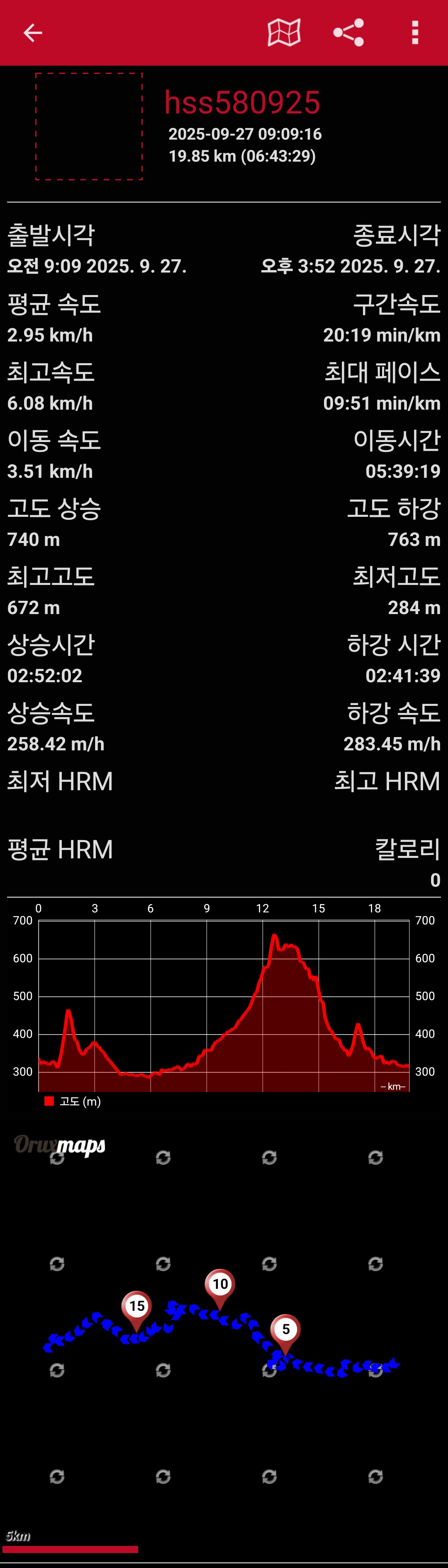 거 리 : 19.85㎞ (06:43:29 소요)