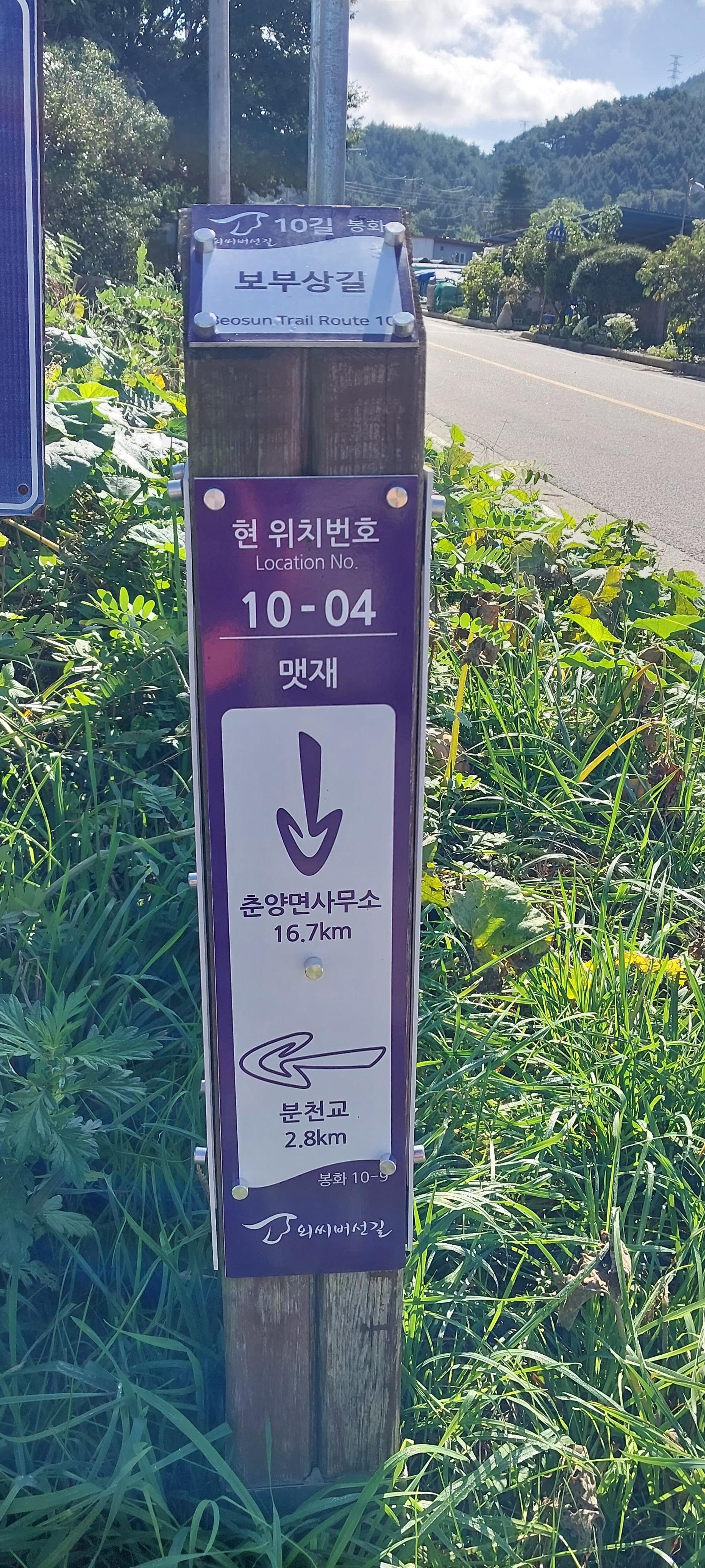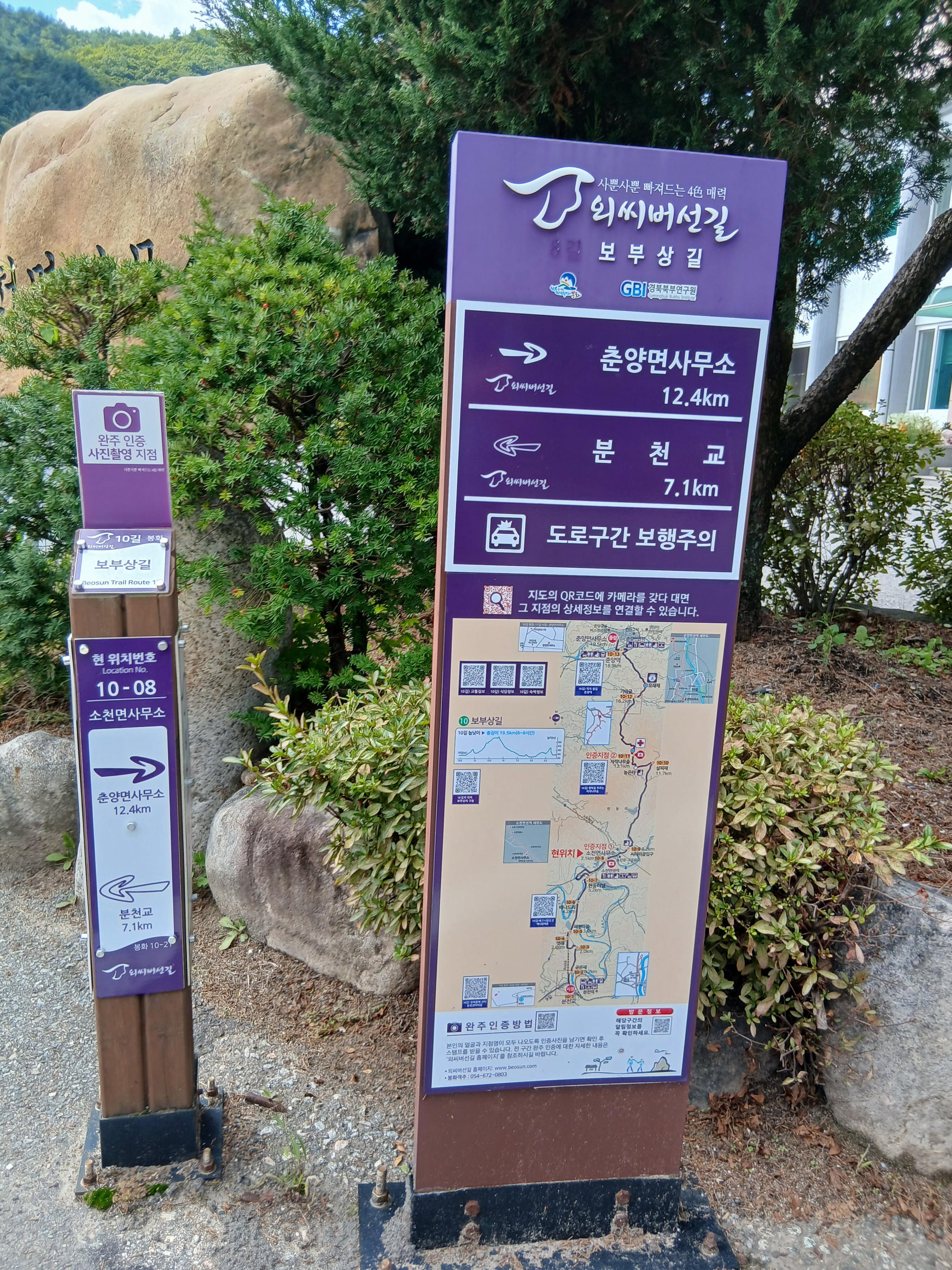 코 스 : 분천교(분천역) - 곧은재 - 맷재 - 배나드리 - 현동터널 - 소천면사무소 - 싸라리골입구 -