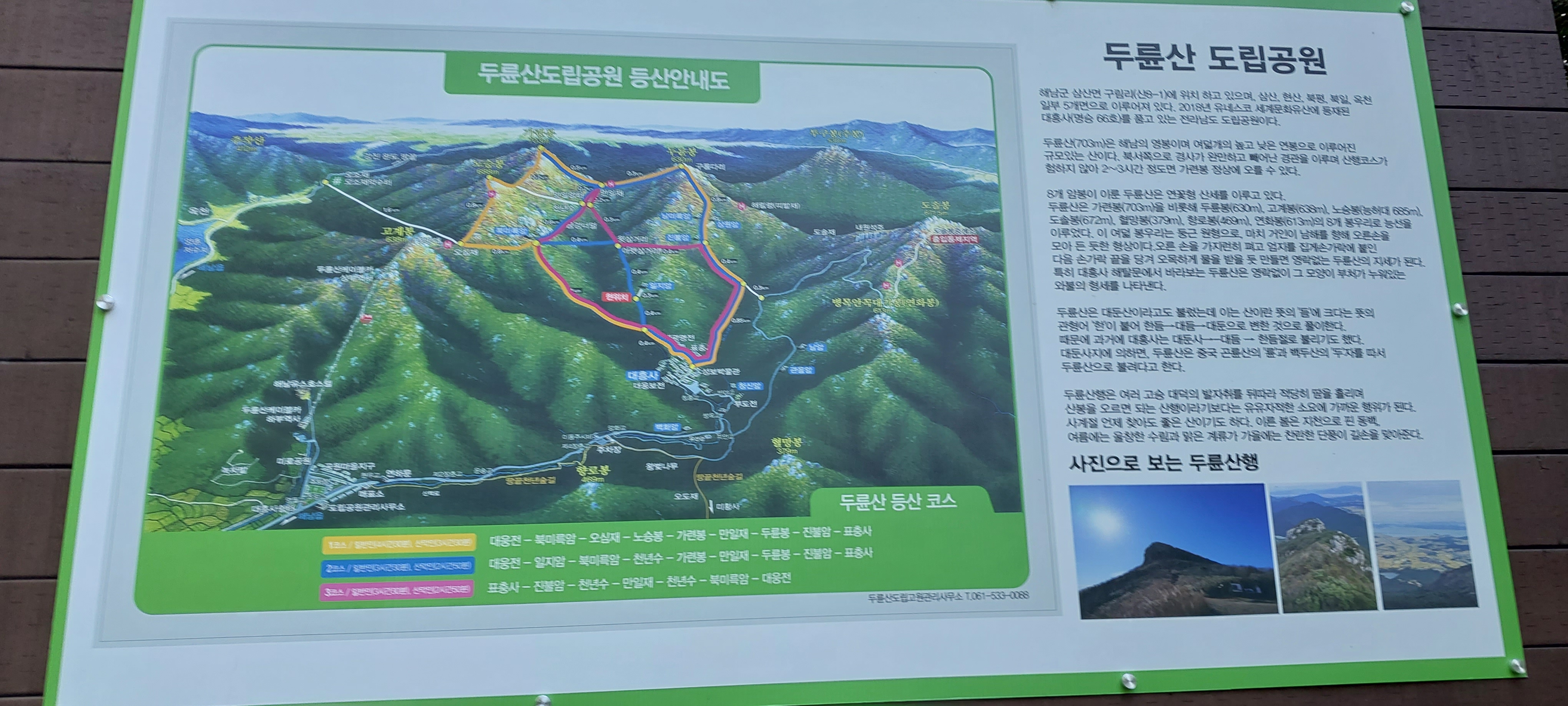 B코스(두륜산): 오소재 야수터 -오심재 - 노슨봉- 두륜산 정상(인증) -만ㅇㄹ재 - 두륜봉 - 진불암-