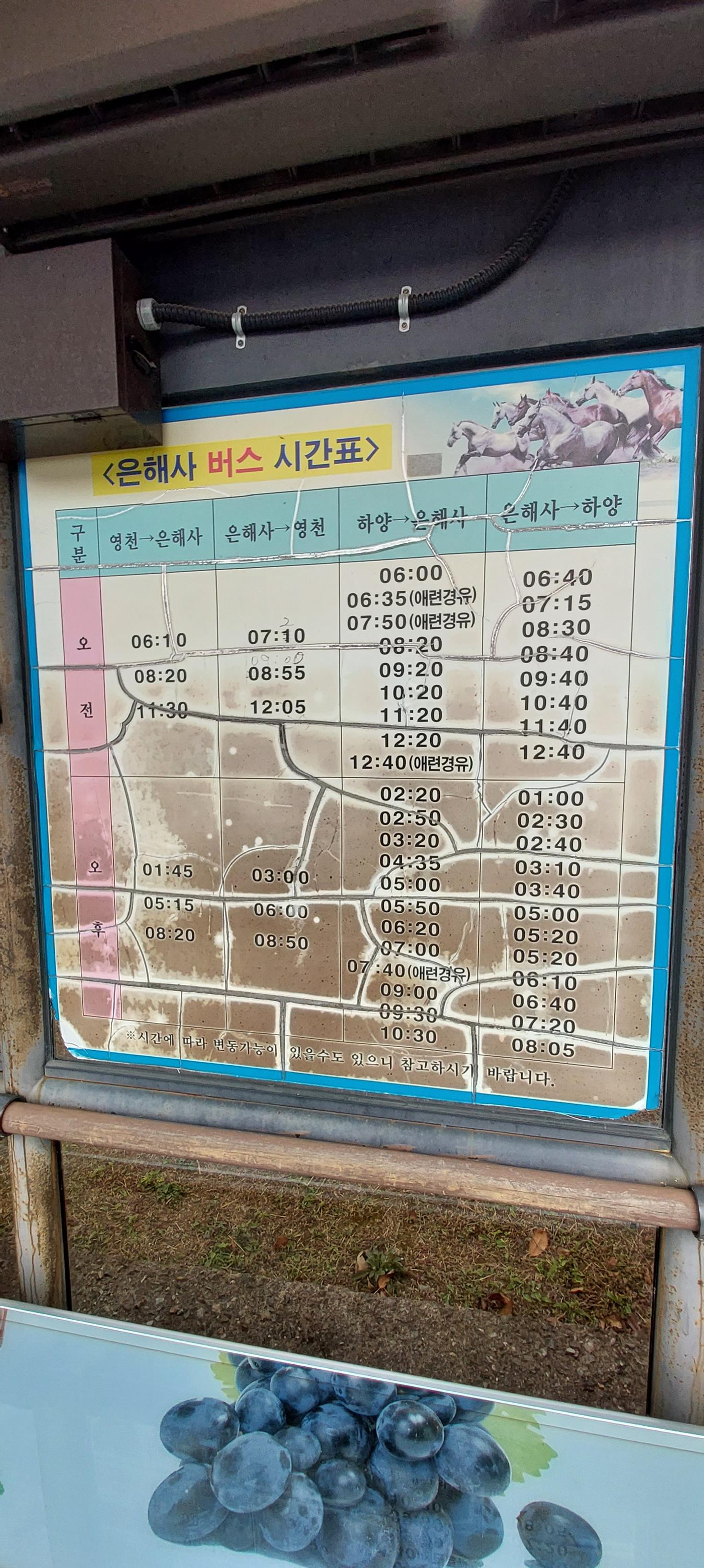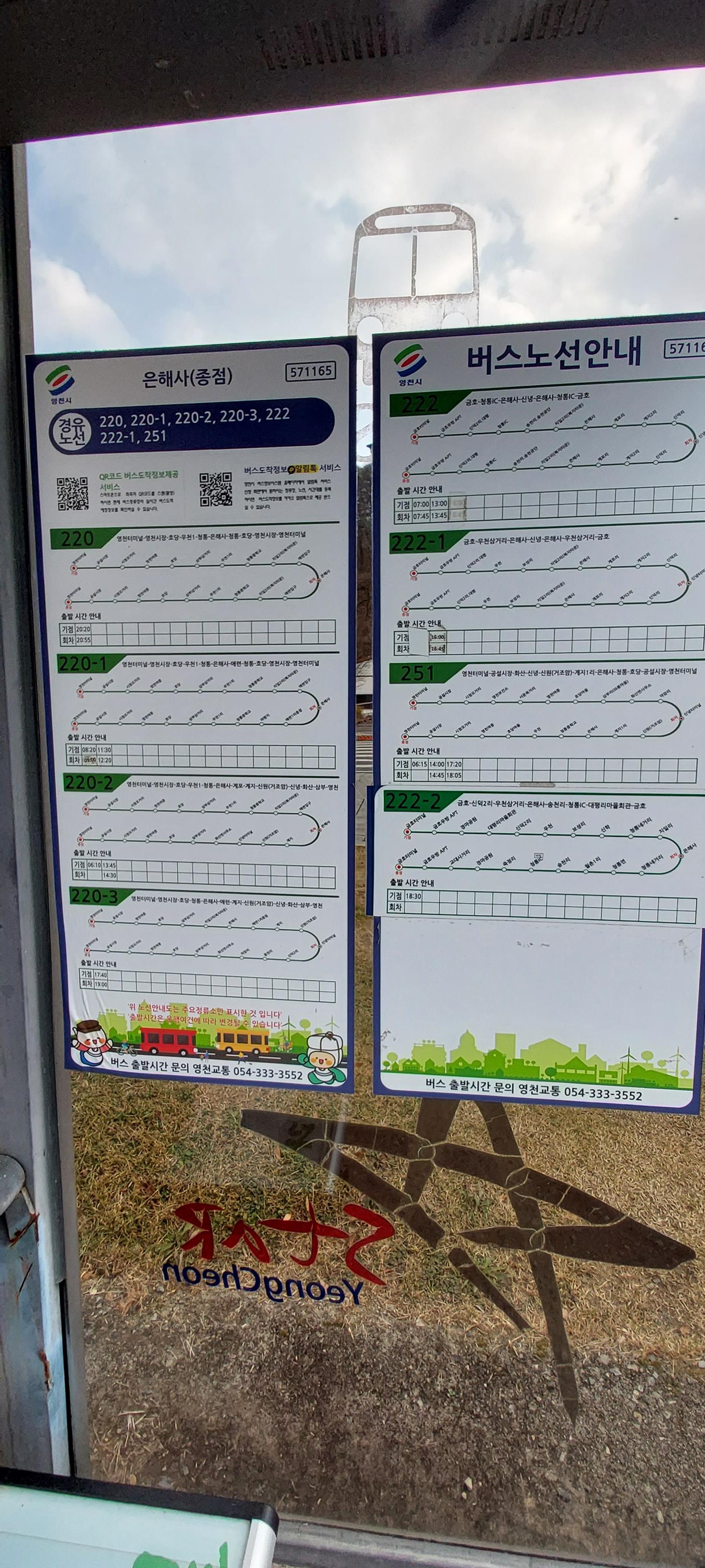 올 때 : 오후 (3:10) 251번 은해사정류장 출발 - 공설시장하차(15:40) - 16시 영천역에서