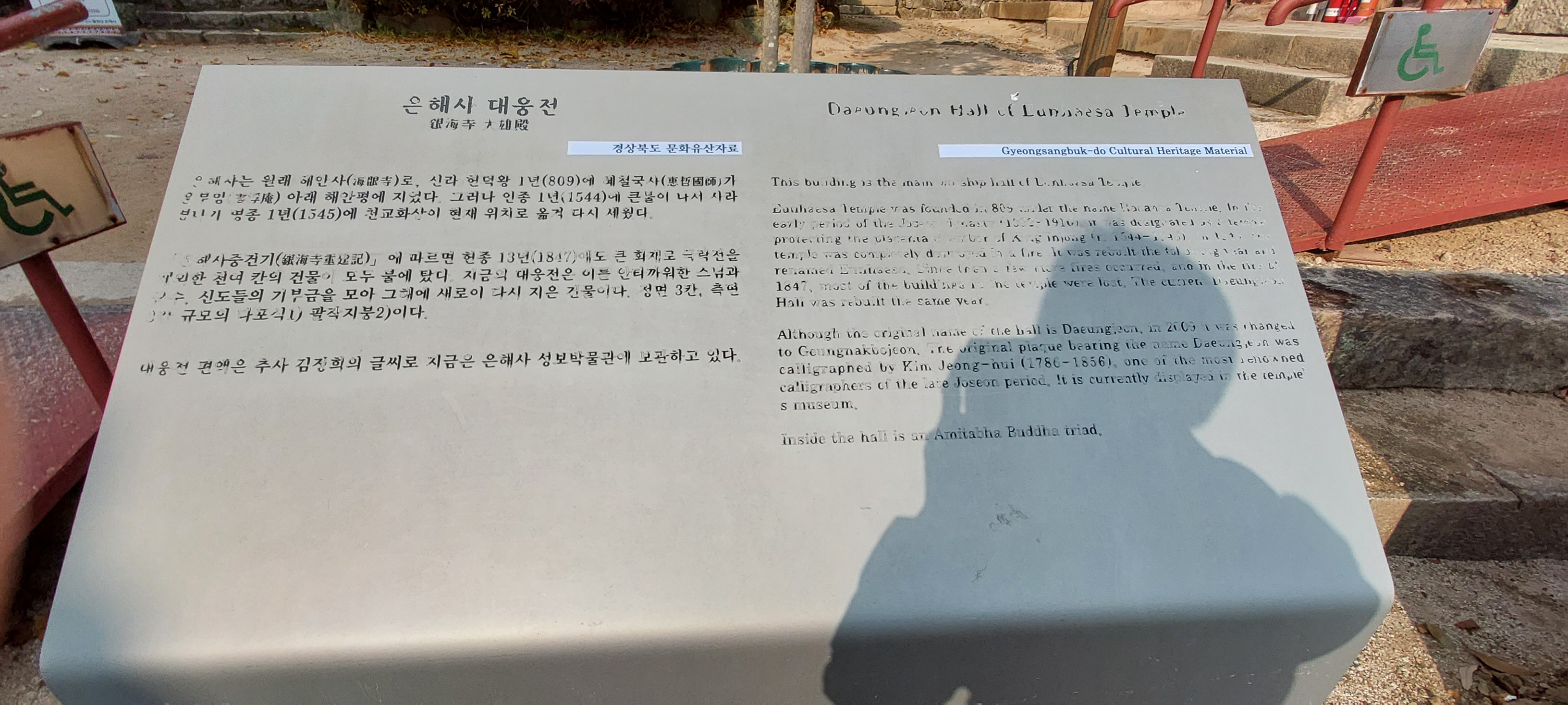 은해사는 추사체의 보고라고 일컬을 정도로 추사 김정희 선생이 쓴 편액이 다수 있어 원만하면서도 힘이 있고