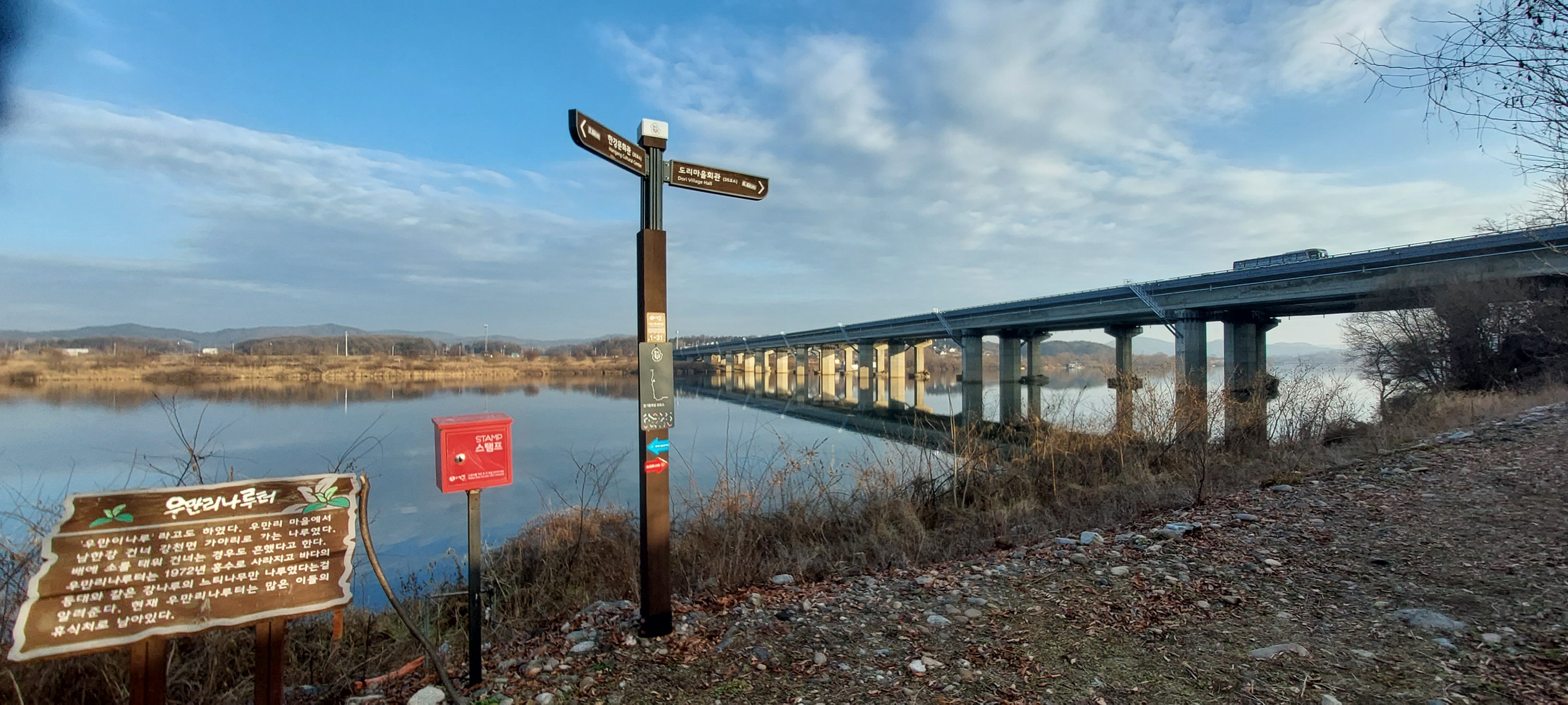도리마을까지 걷는 1코스 " 옛나루터길" 에는 현재 부라우, 우만리, 흔암리 나뤄 세 곳의 흔적이 남아있다.
