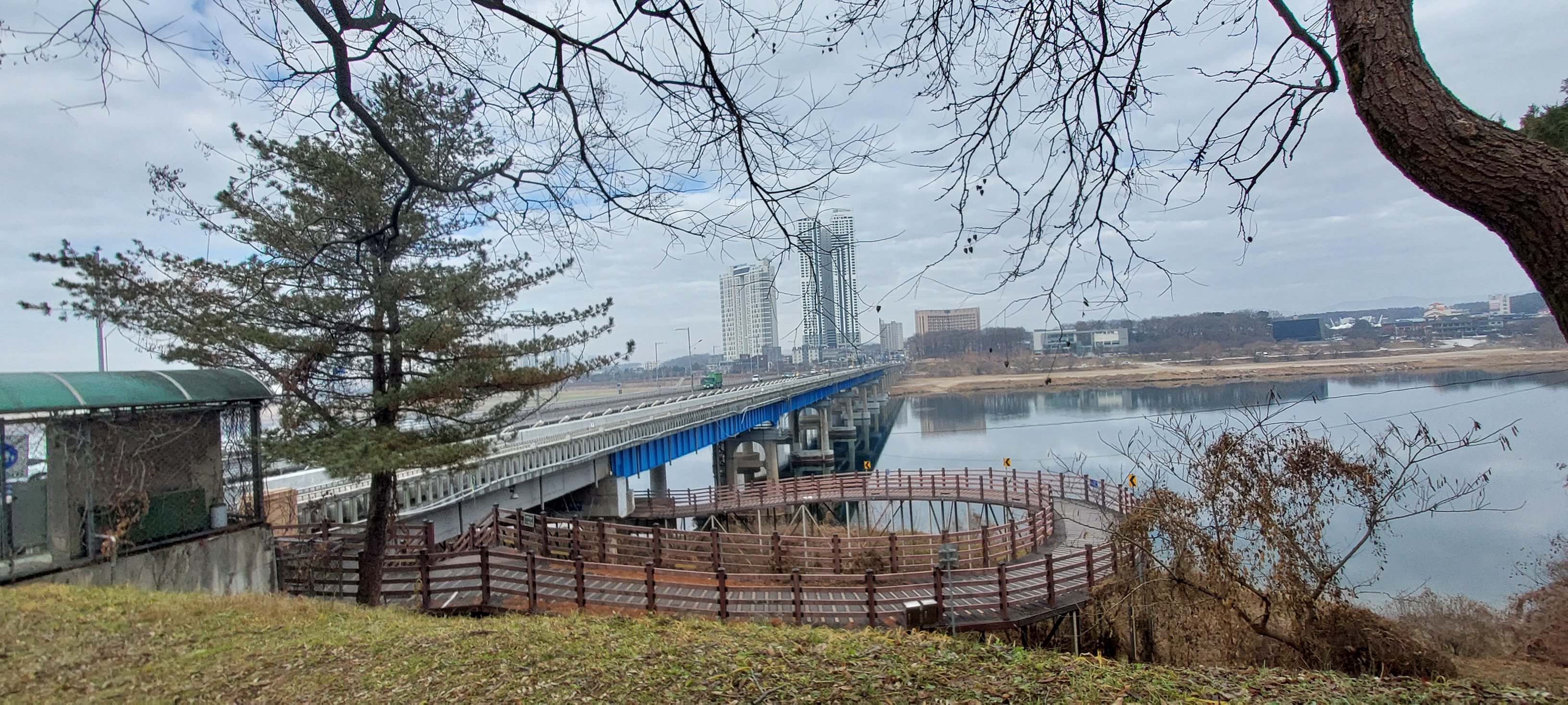 기다리다 오후 5시다 되어 1톤 트럭 히치해서 여주역 근처 2호수변공원 근처에서 내려 여주역