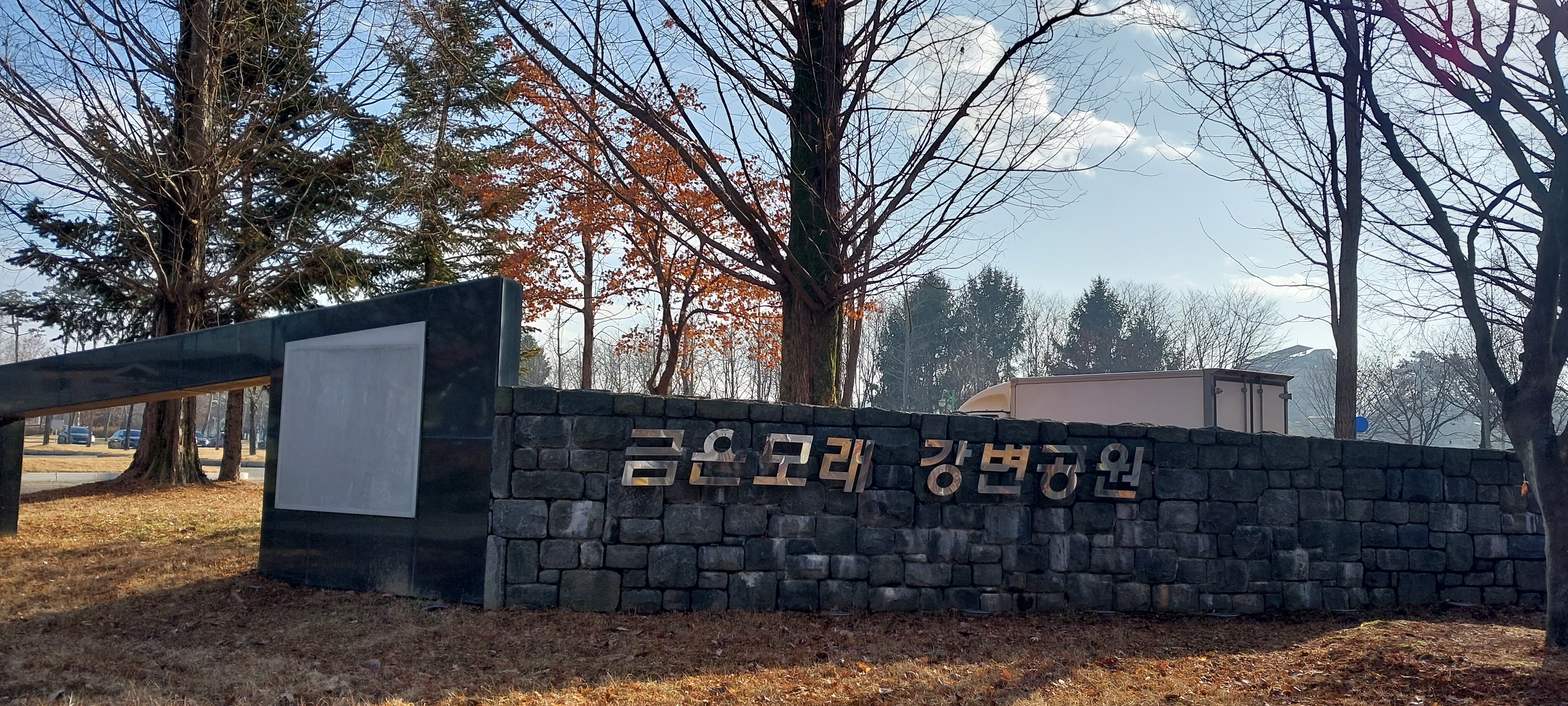 제방을 쌓기 전 모래에서 은빛이 난다고 해서 금은모래라고 부르는 강변유원지를 지난다. 지금은 캠핑장소로
