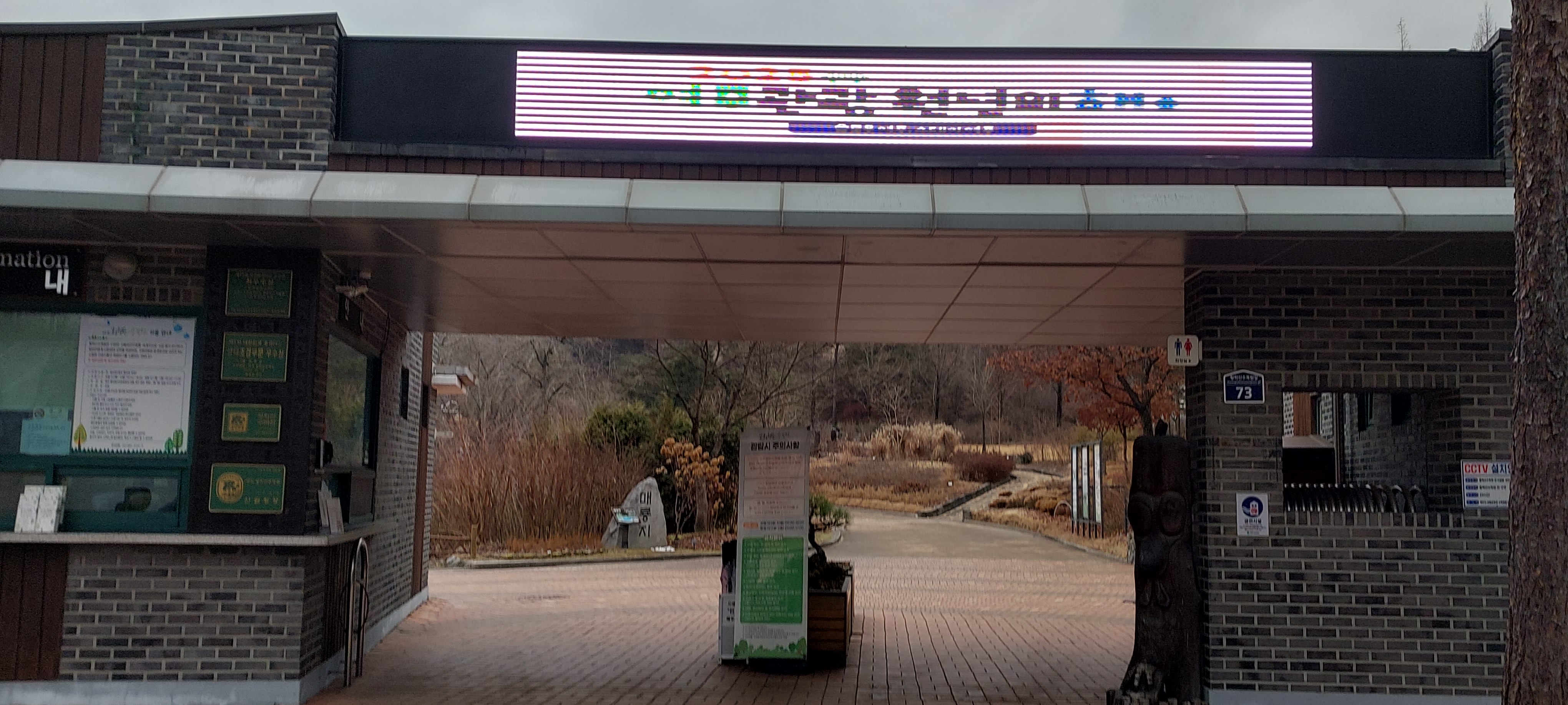 황학산 산림욕장 입구에 도착한다. 무료로 개방하는 황학산수목원에 다다르면 멸종위기 2급 단양쑥부쟁이를