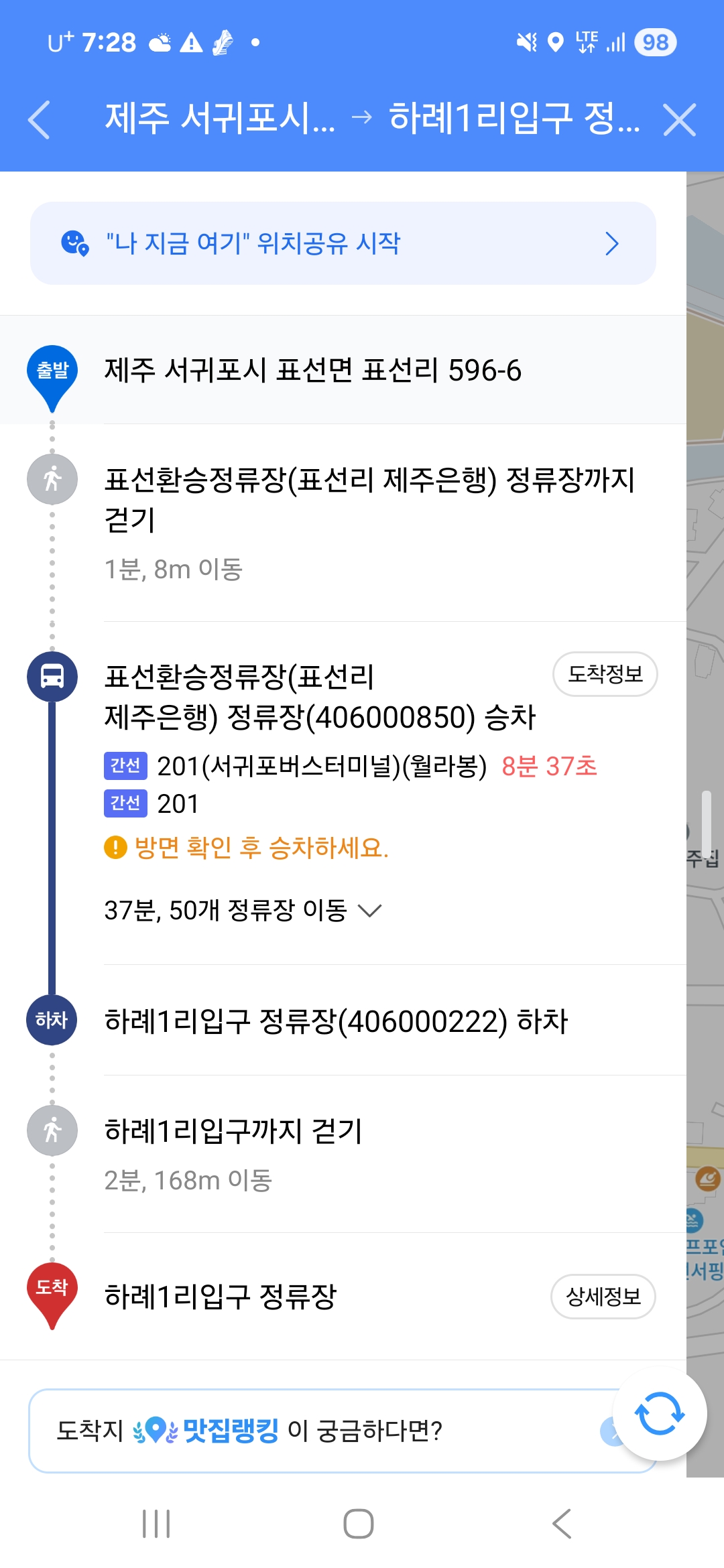 18:10 표선환승(제주은행)정류장 하차 우리끼리 저녁먹음