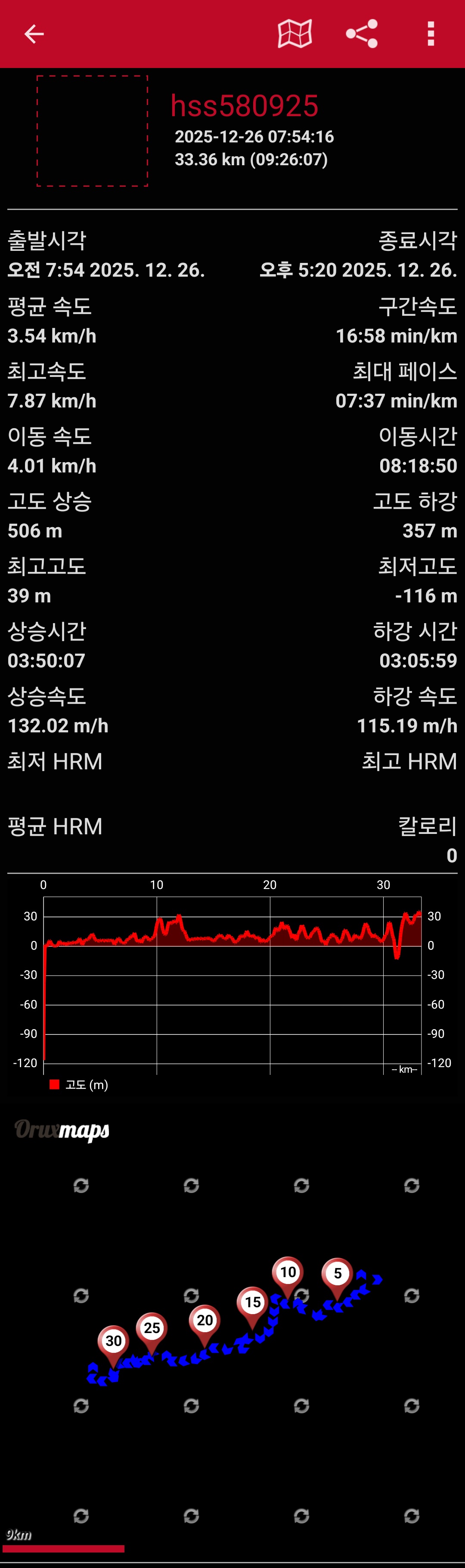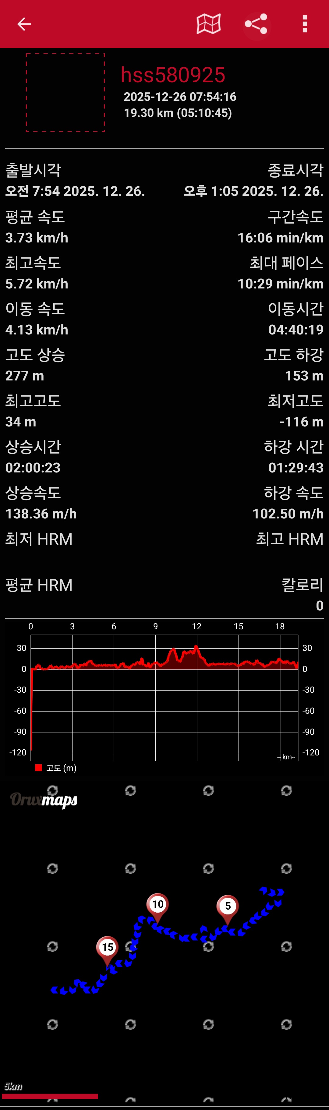 ※갈 때 : 숙소에서 07:48출발 걸어서 4코스 진행 (12:26분마치)